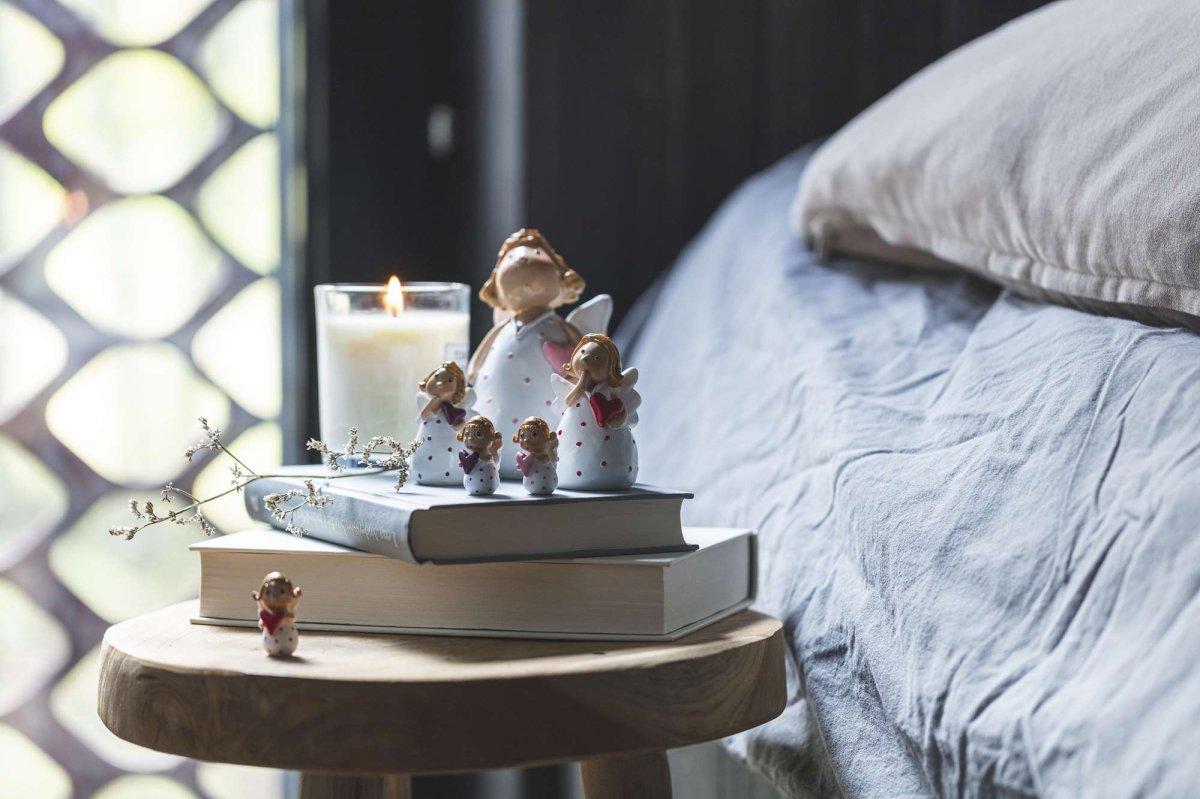 Ängeln Birgit i miniformat, små fina änglar med söta prickar och hjärtan i olika färger.