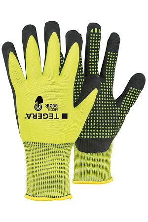 Handske för precisionsarbete med hög synbarhet från Ejendals. Handsken är smidig och mjuk med nitrilprickar i handflatan för extra bra grepp. Handsken går även att använda på pekskärm.