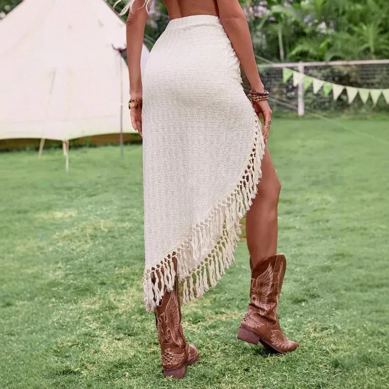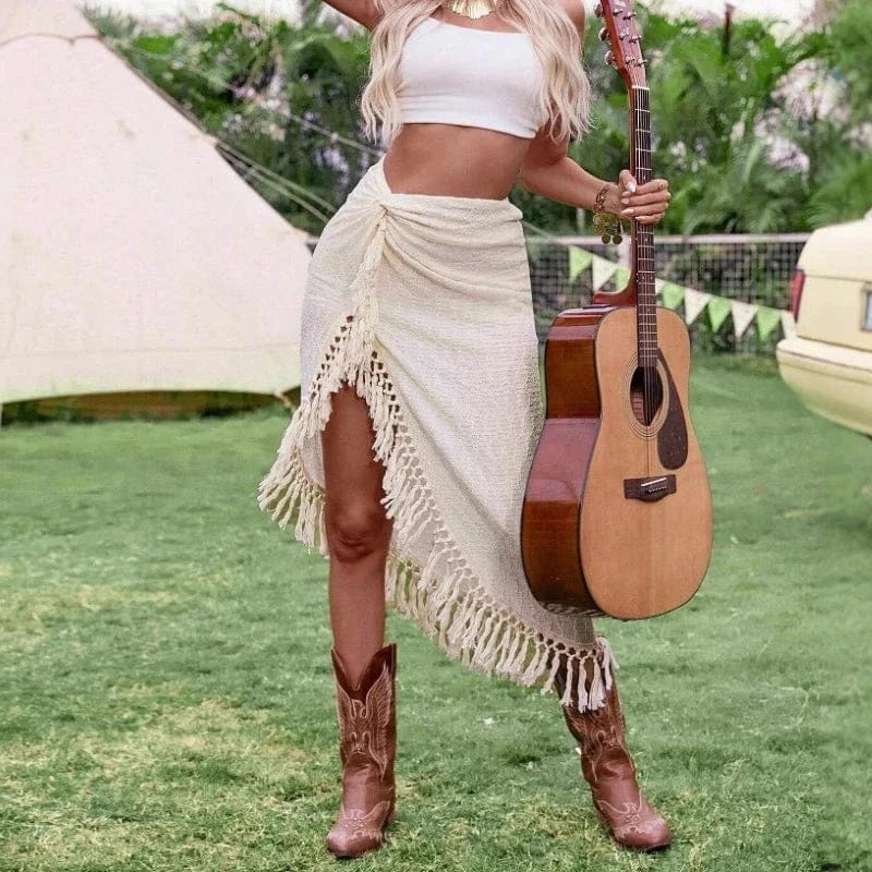 Låt din stil ta plats med en asymmetrisk westernkjol som rör sig lika fritt som du gör. Den mjuka, svepande passformen och de generösa fransarna skapar en bohemisk, äventyrlig känsla – perfekt för festivaler, sommarkvällar eller när du vill ge vardagen en hint av vild elegans.