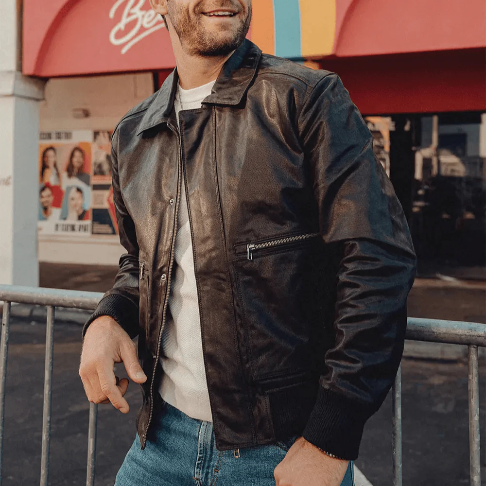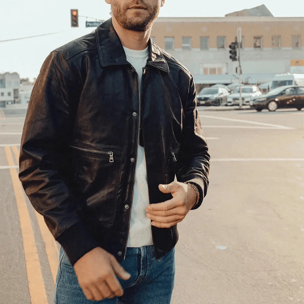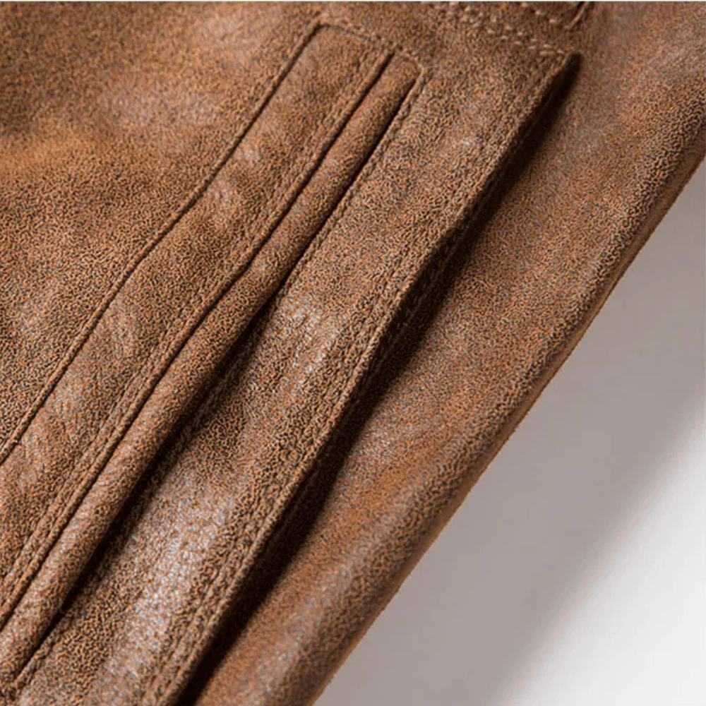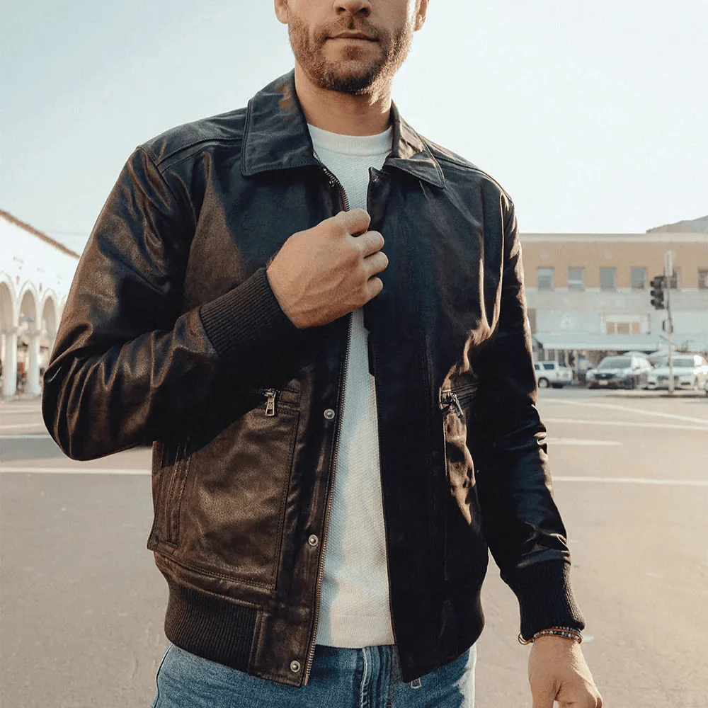 Kliv in i en värld av tidlös maskulin elegans med vår aviatorjacka för herr. Den är skapad för dig som uppskattar robust kvalitet, klassiskt snitt och den där självsäkra känslan som bara riktigt bra läder kan ge. Den mjuka insidan och det gedigna ytterlädret gör jackan lika bekväm som den är snygg – perfekt för kyliga dagar i höst och vinter.