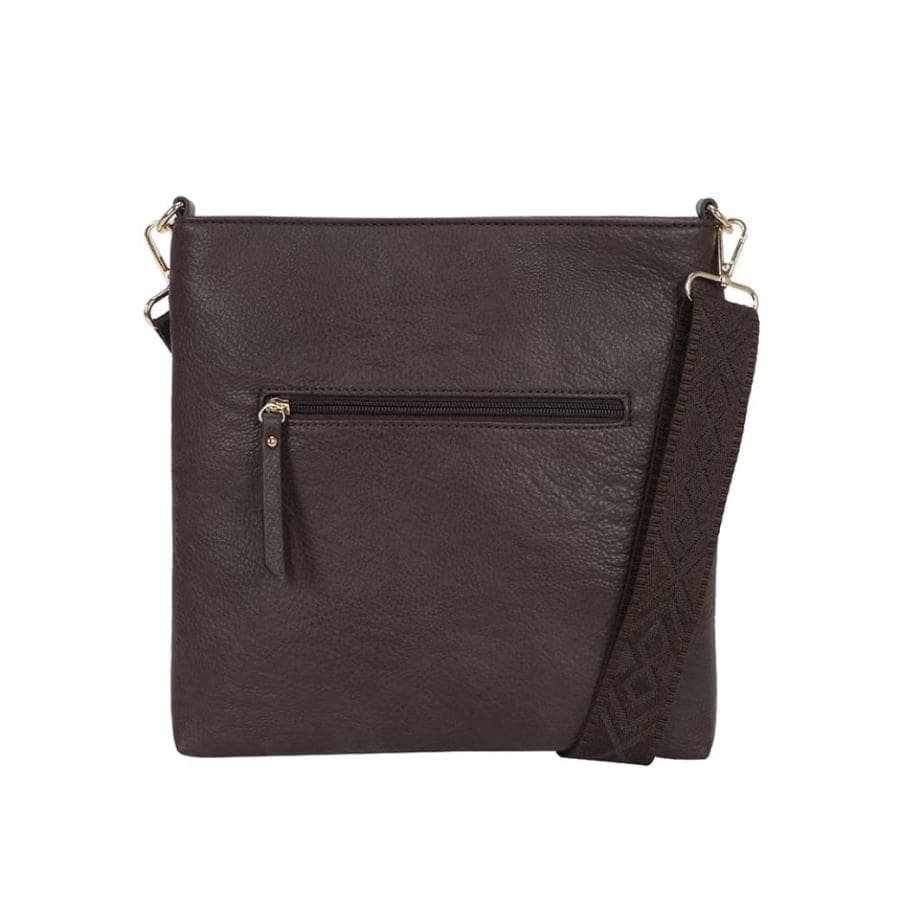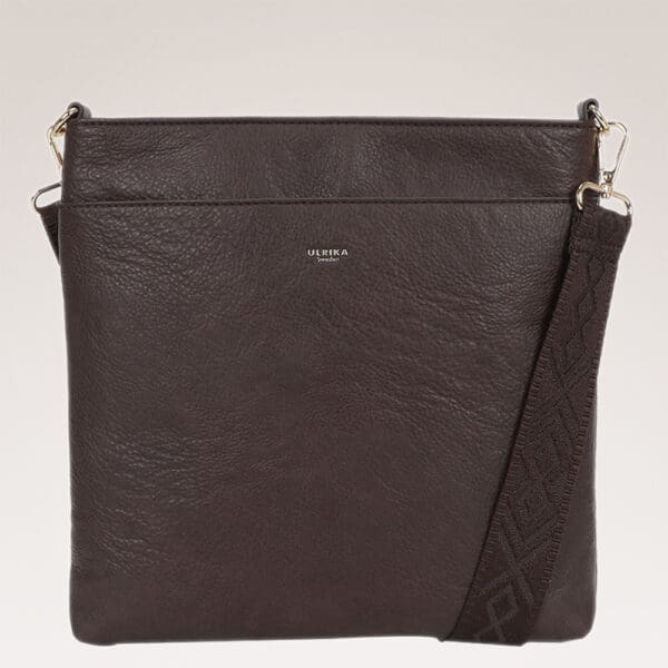 Axelremsväska med fin axelrem med ton i ton mönster. Ett stort fack med flera innerfack – varav ett med dragkedja. Stort ytterfack fram med knapp och ett bak med dragkedja.