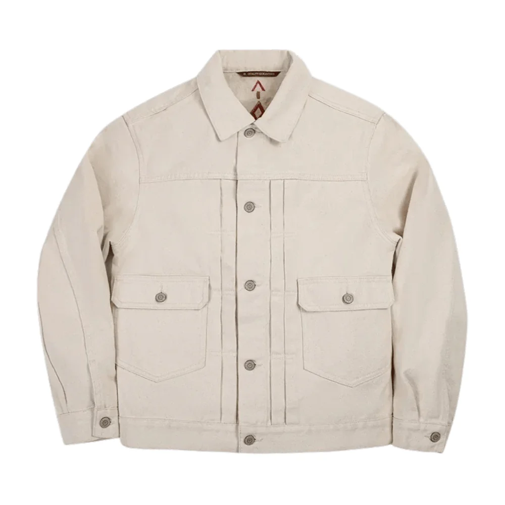 - Naturligt rå känsla – de små mörka prickarna i tyget är avsiktligt bevarade bomullsfrön som ger jackan en unik, vintagepräglad struktur.