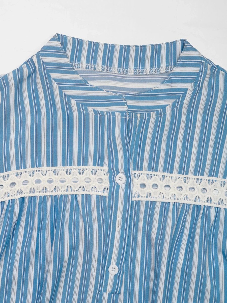Blå vit randig blus – fräsch sommarstil med romantisk spetsdetalj