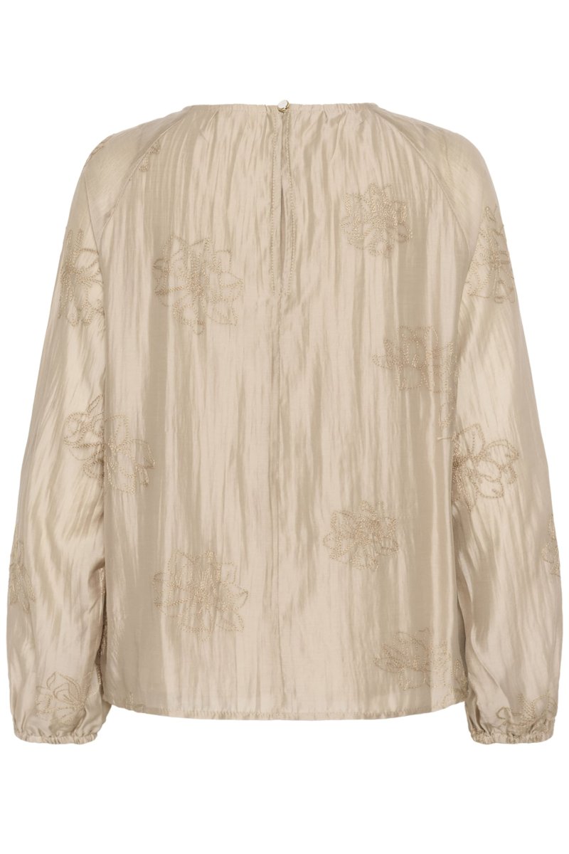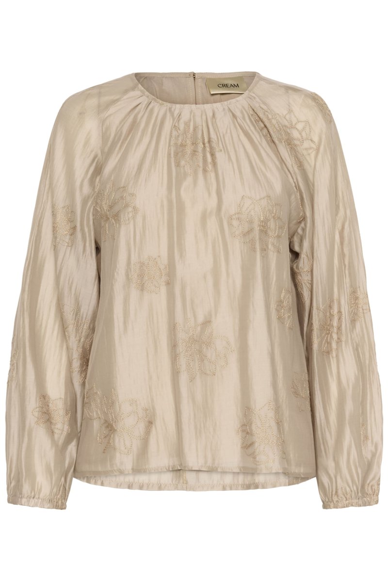 Denna eleganta blus kommer från Cream. Blusen har rund hals och lång puffärm. Fina diskreta broderidetaljer.