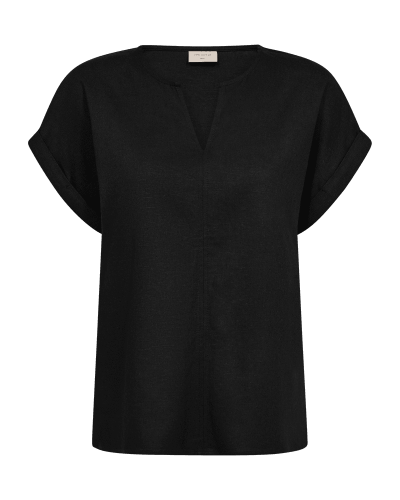 Snygg blus i viskos/linnematerial med en enkel siluett och lösare passform från FREE/QUENT.