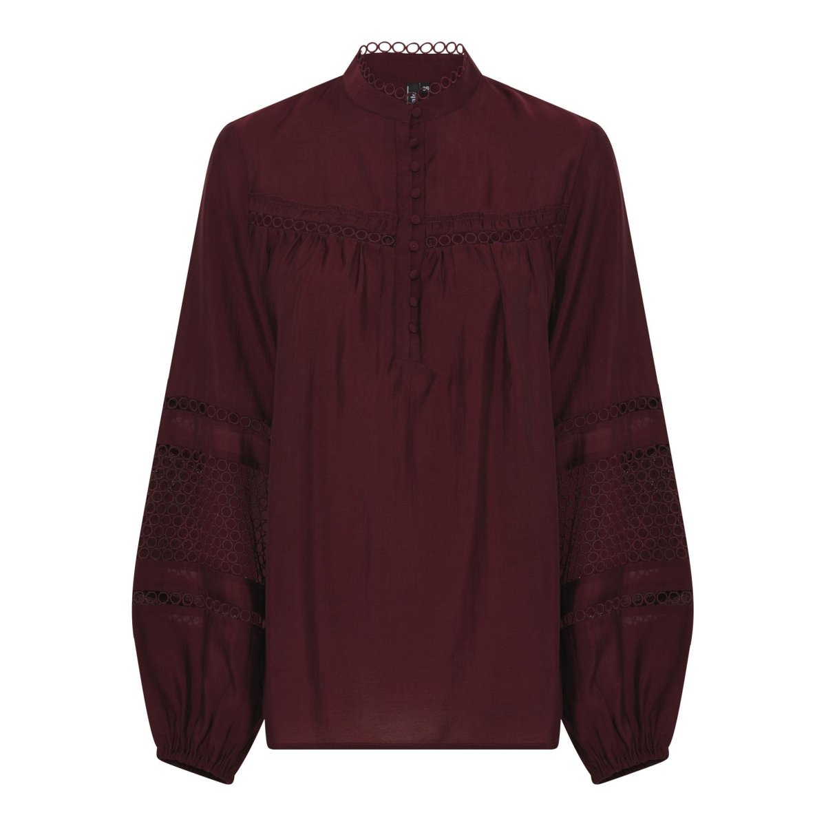 Denna fina blus med lång ärm i färgen Burgundy kommer från Soulmate. Fina detaljer i form av mönster och knappar upptill och mönster och resårkant vid ärmslut nedtill. Stylas fint ihop med kjol eller byxa.
