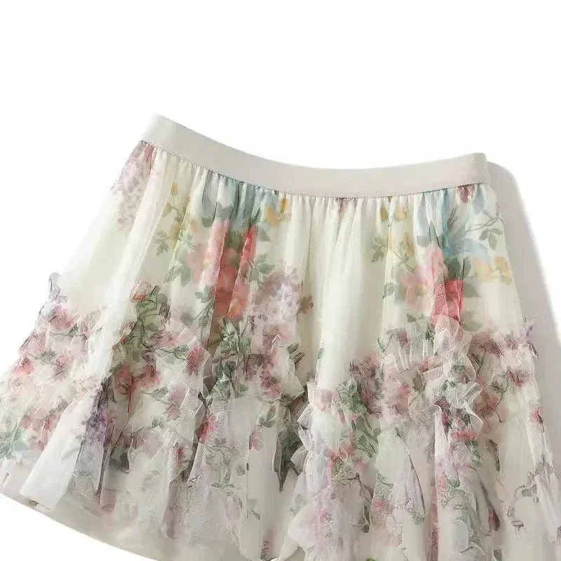 Bohemisk tyllkjol med blommigt akvarellmönster – drömsk elegans för din vardag