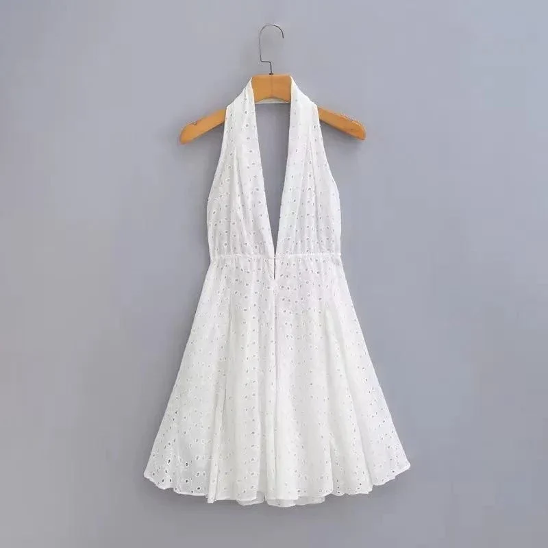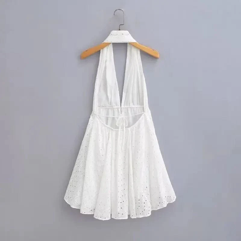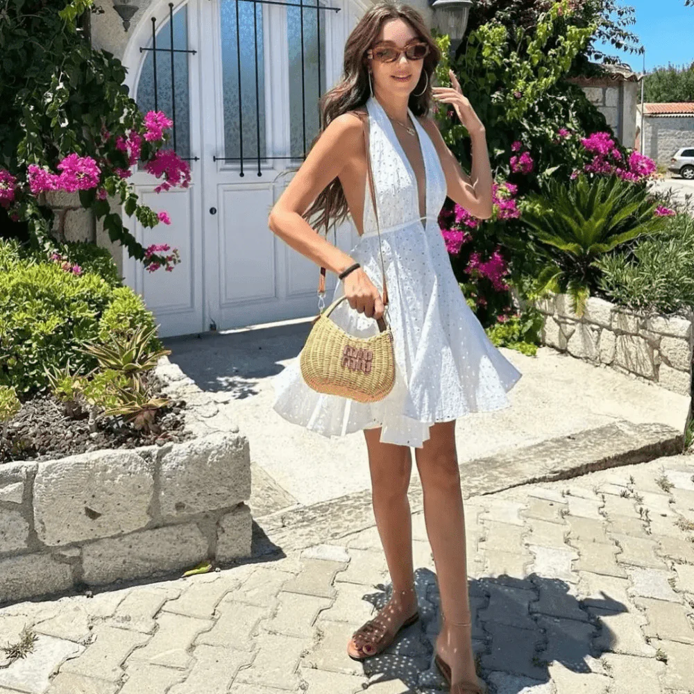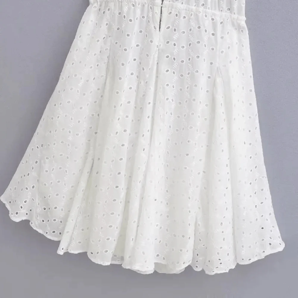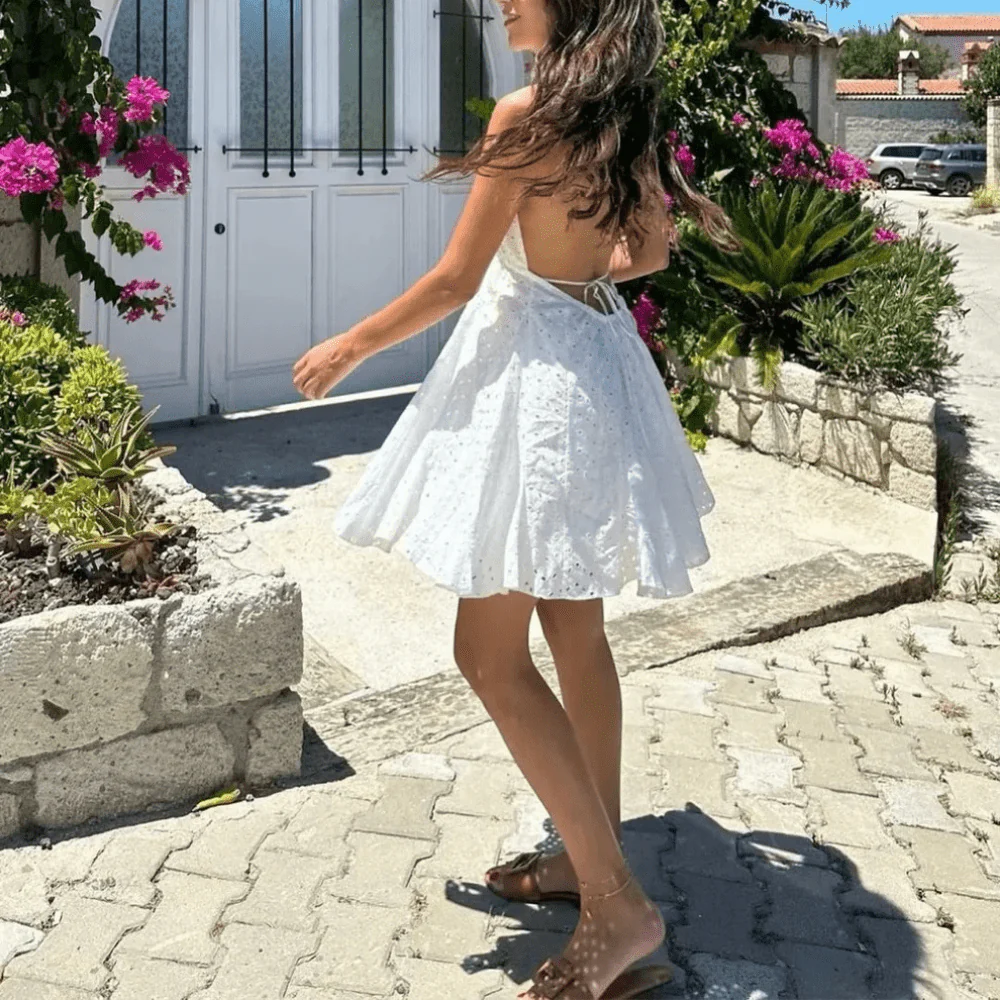 Låt sommaren bli oförglömlig med vår vita broderade klänning. Ett luftigt och romantiskt plagg som kombinerar bohemisk charm med en modern, sofistikerad stil.