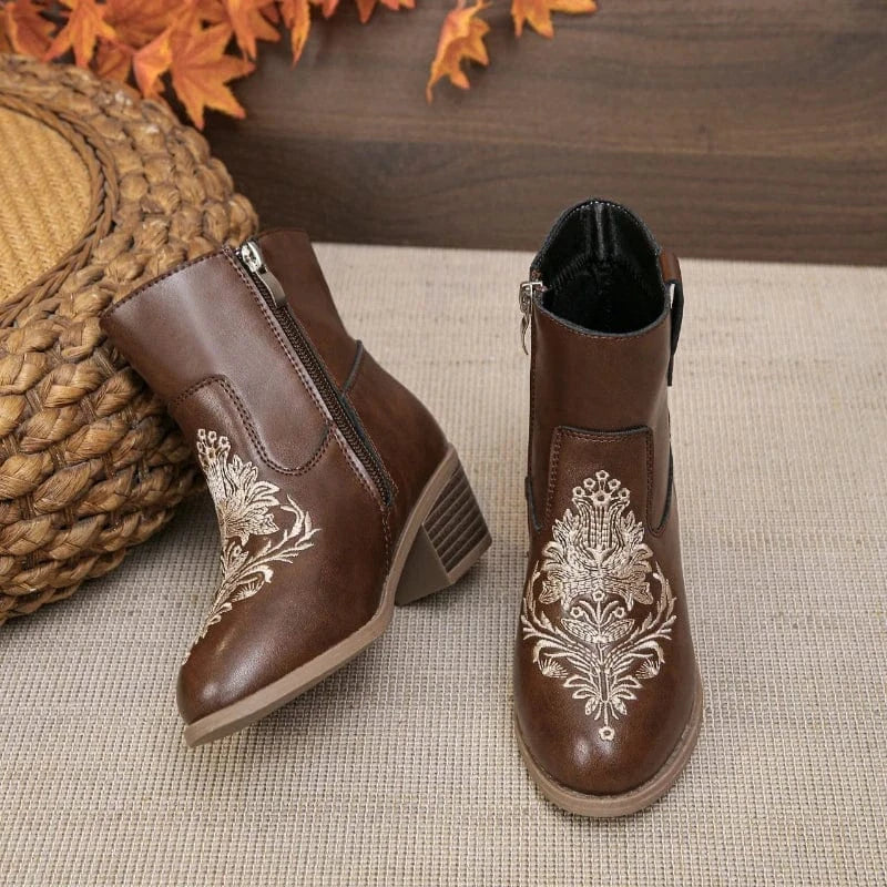 Broderade cowboyboots för flickor med vintageblommönster – en touch av vilda västern i din stil