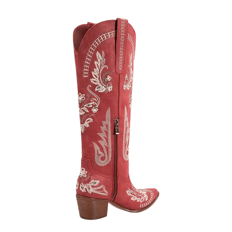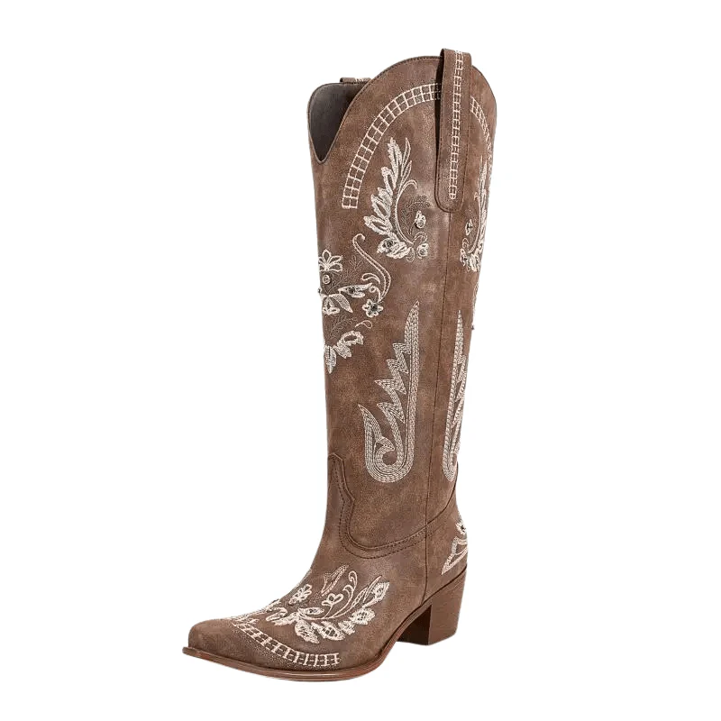 Detaljerade broderier och spetsig tå ger en autentisk cowgirlstil som drar blickarna till sig. -