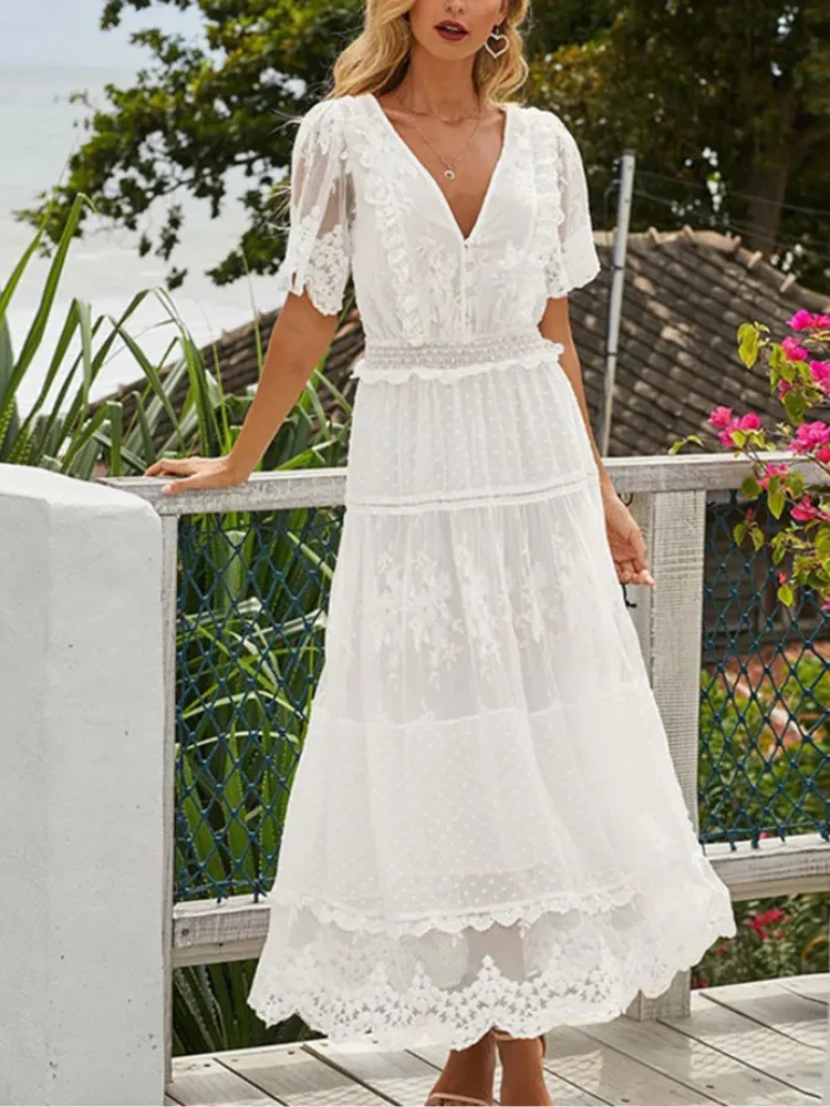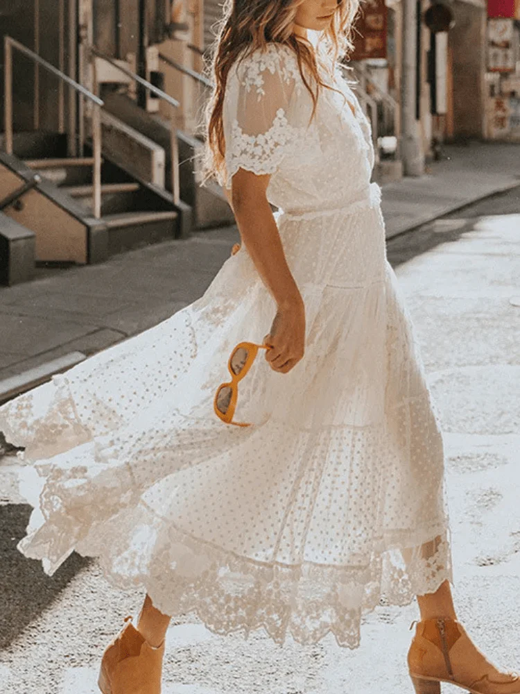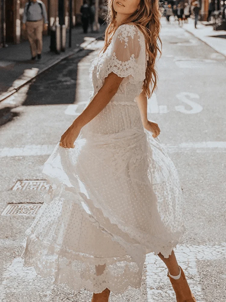 Fånga allas blickar på nästa sommarbröllop med denna bohemiska och romantiska klänning. Perfekt för dig som vill känna dig både bekväm och stilfull, med en lätt och luftig design som dansar i vinden.