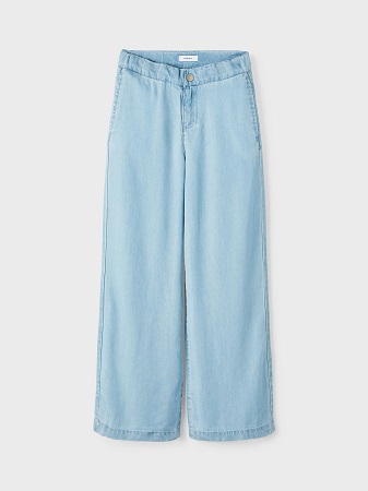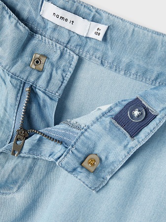 SE HIT! Fina tunna byxor i mjukt denim-tyg från Name It. Denim är ett slitstarkt vävt tyg som finns i flera uttryck för en unik look. Byxan har justerbar midja, är bred i modellen och stängd med krokknapp och gylf med dragkedja fram. Byxan har två fickor fram, är normal i passformen och hög i midjan.