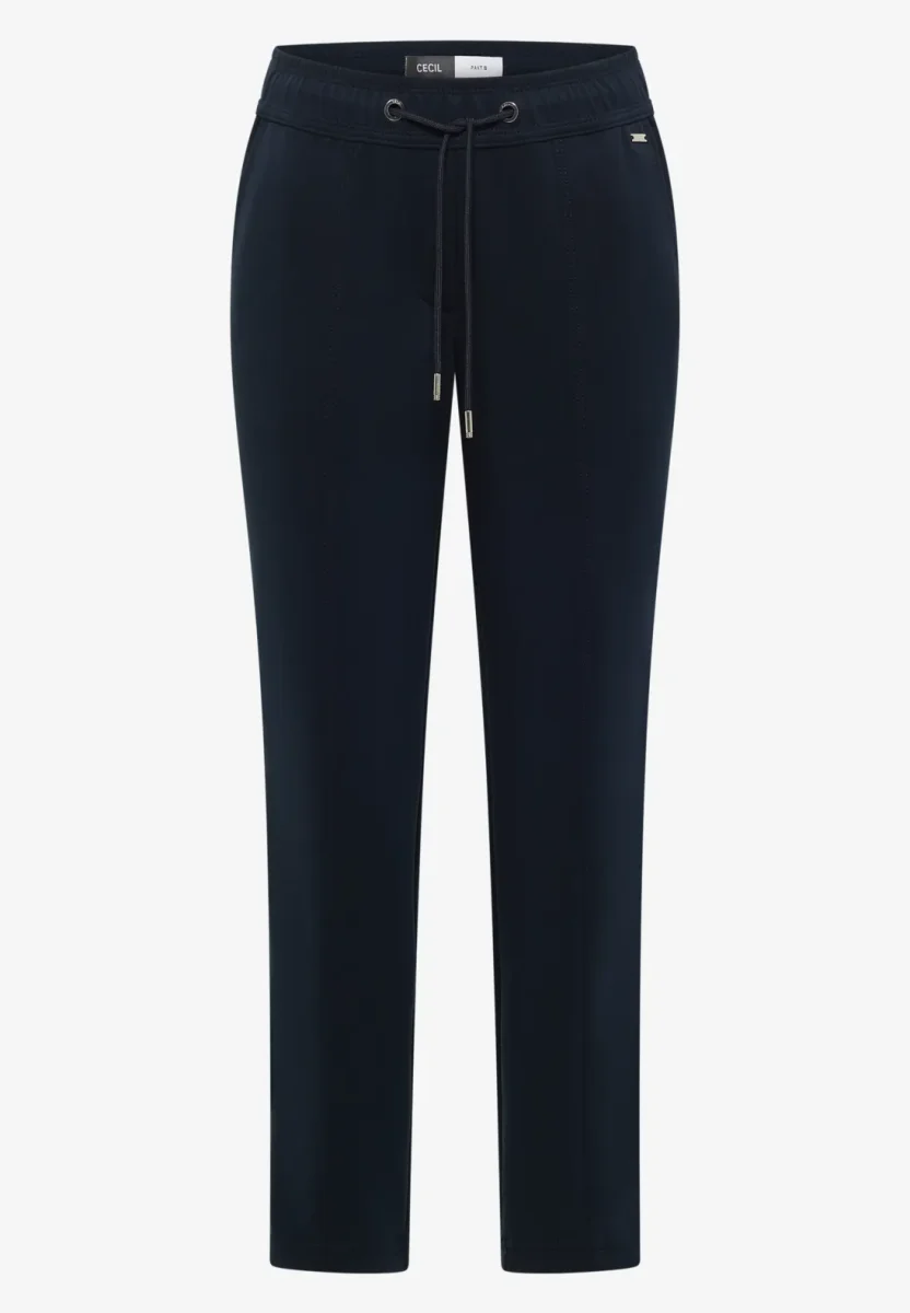 Mjuk och skön byxa i sweatshirt kvalitet från Cecil. Byxan har något smalare ben, medelhög midja med resårlinning och dragsko. Fickor fram och fina dekorativa sömmar.