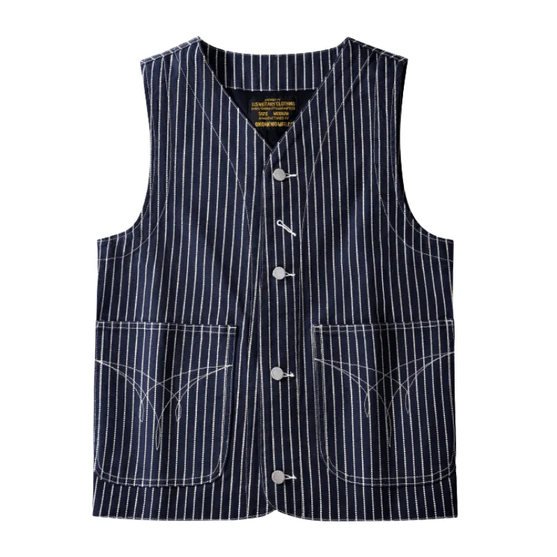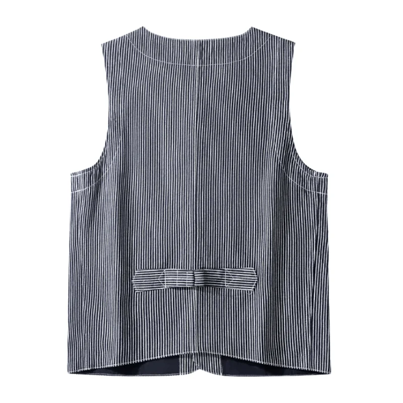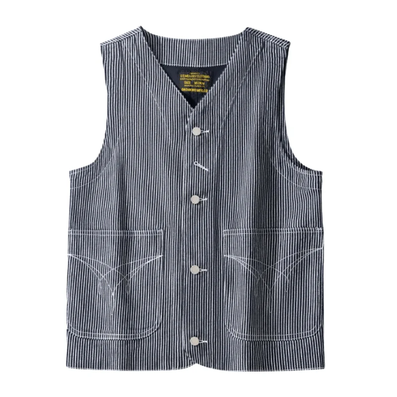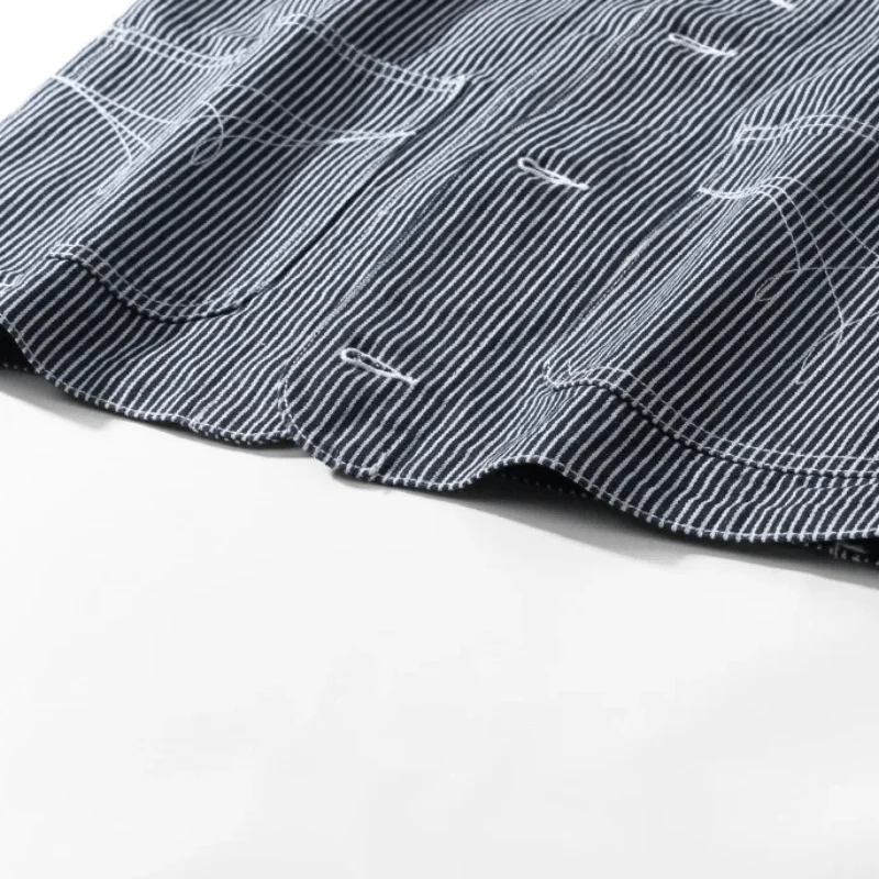 En väst som denna är mer än bara ett praktiskt plagg – den är ett stiluttalande. Med sin randiga bomullscanvas och robusta arbetsklädesinspiration för den direkt tankarna till Classic Americana och den tidlösa western-estetiken. Perfekt för dig som vill addera en känsla av autenticitet och hantverk till din garderob.