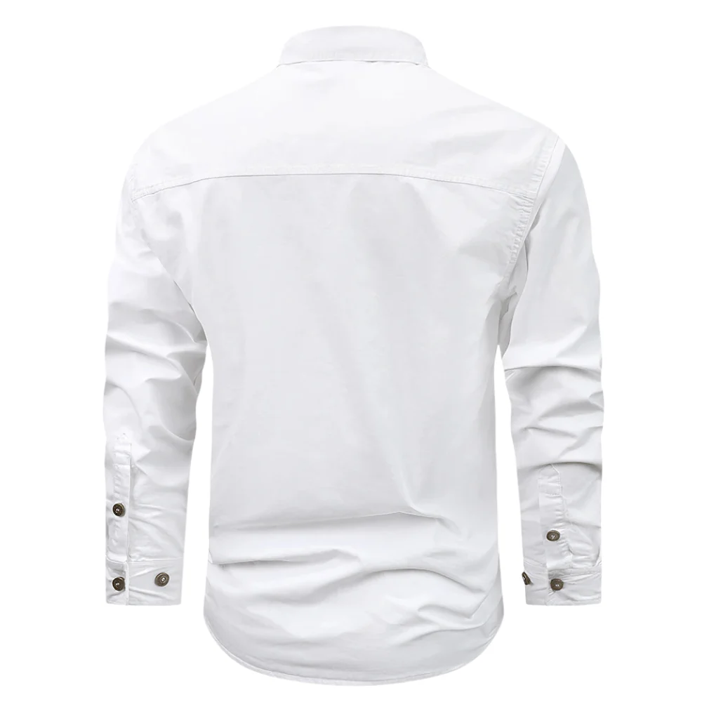 - Praktisk design: Full knäppning och dubbla bröstfickor för både stil och funktion.