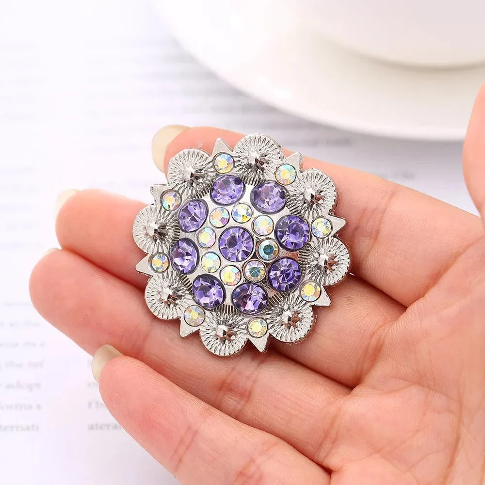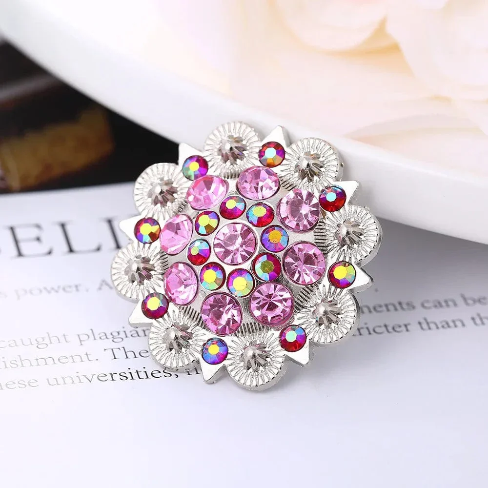 Lyft din väska, ditt bälte eller armband med en touch av färg och elegans. Den här strålande conchon med kristallstenar i blomform är skapad för att ge liv åt dina accessoarer – oavsett om du föredrar ljust, dramatiskt eller färgglatt.