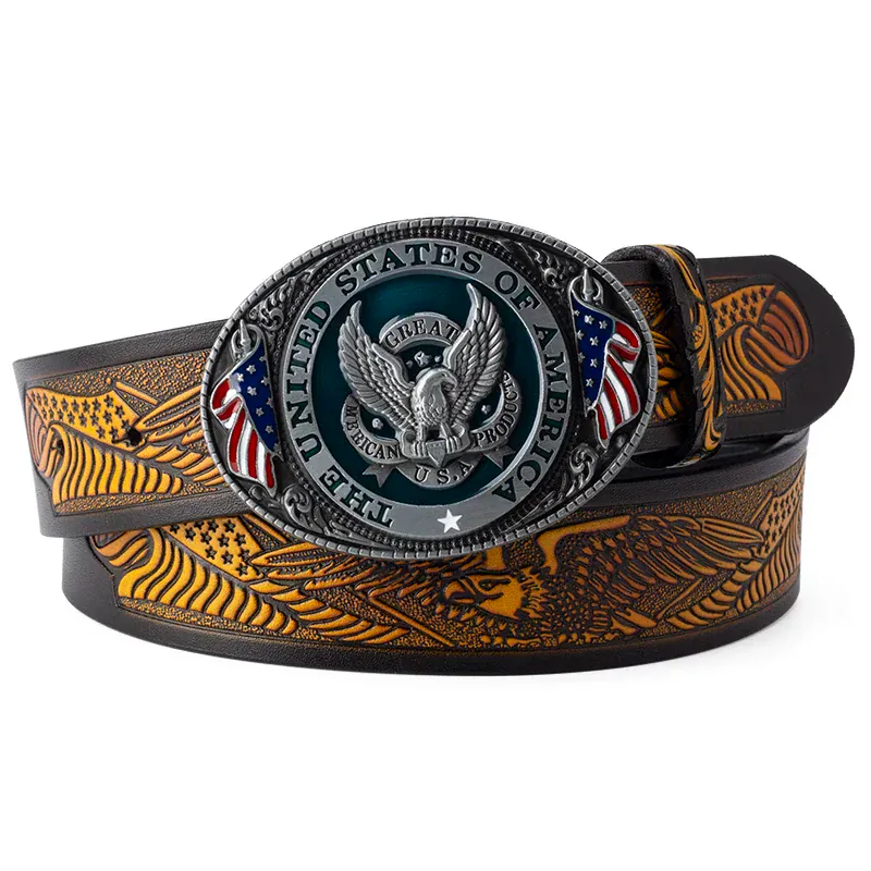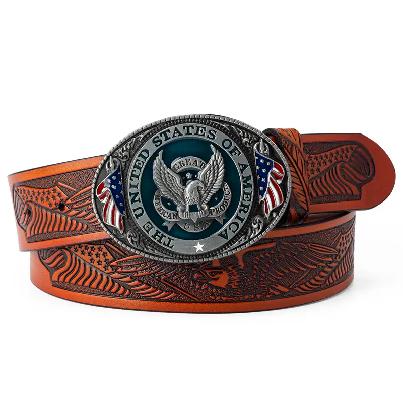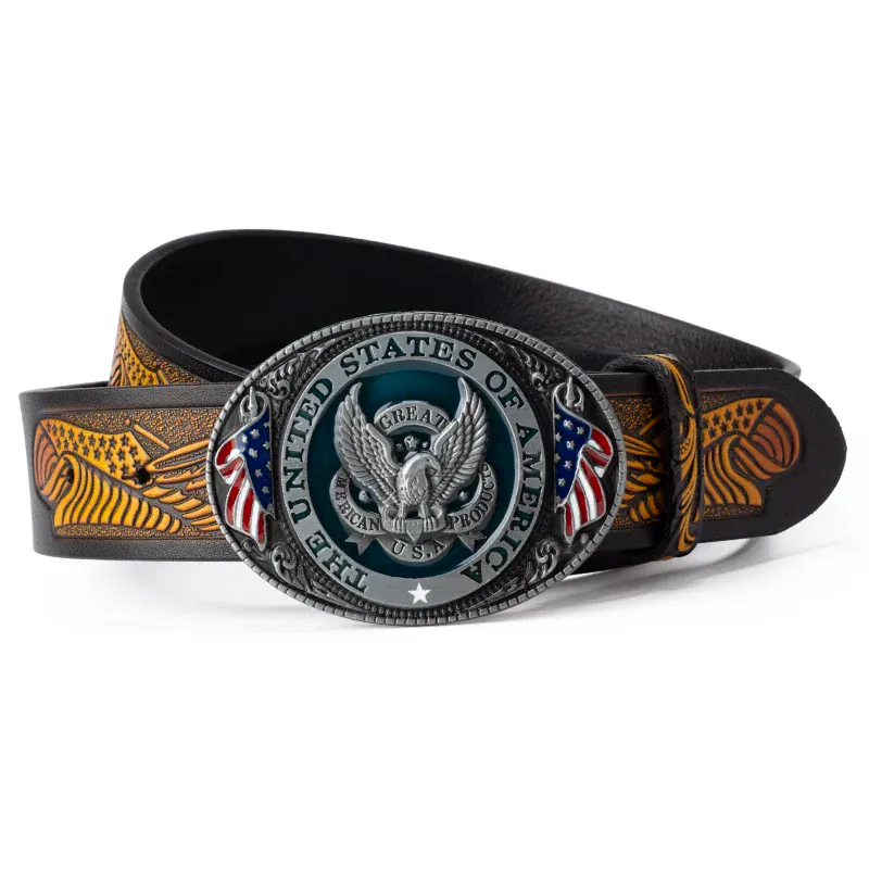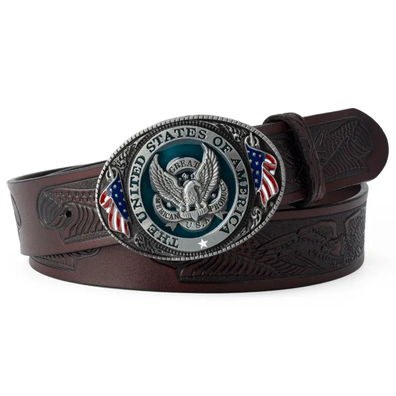 Cowboybälte i läder med amerikanskt flaggspänne: kraft, stil och frihetskänsla i ett