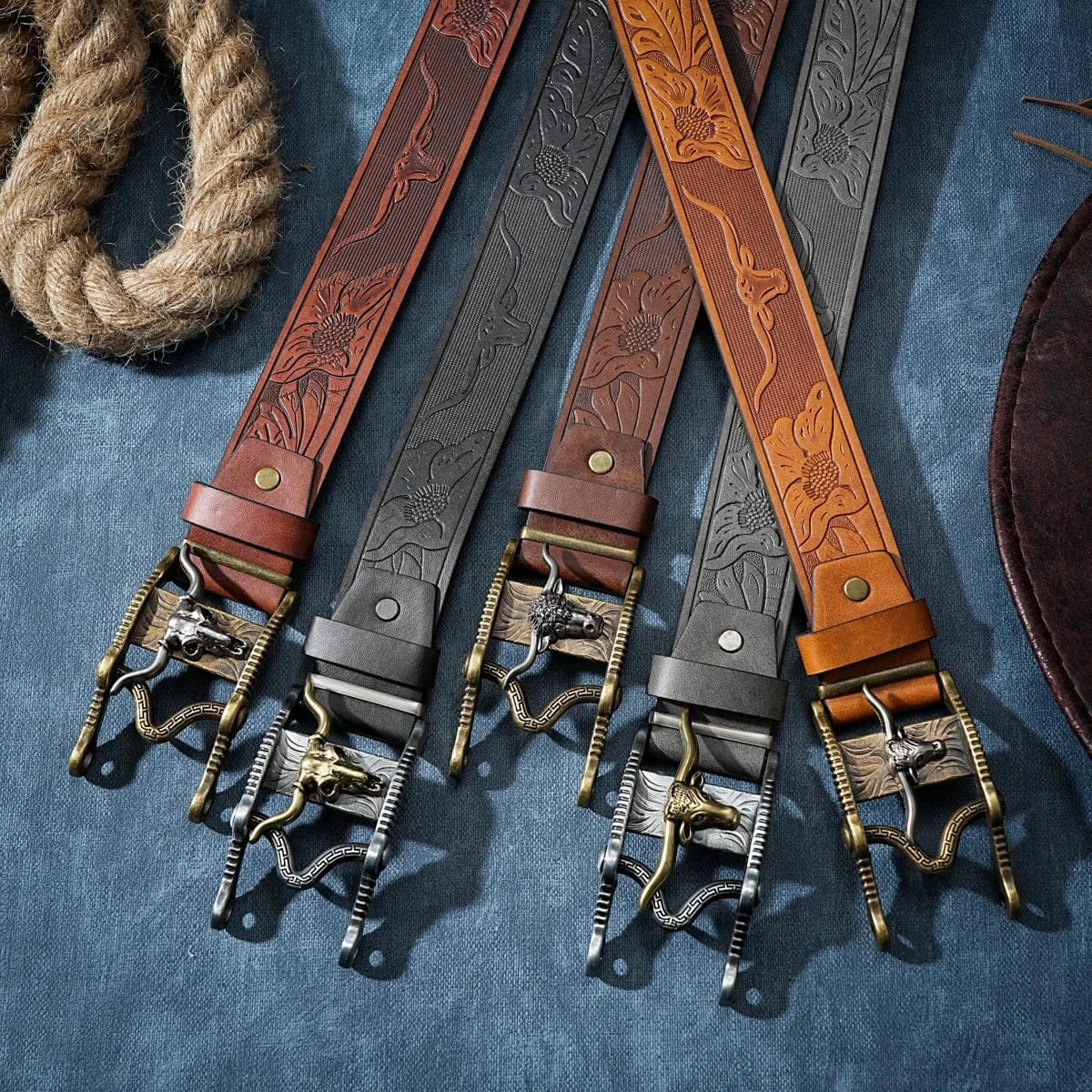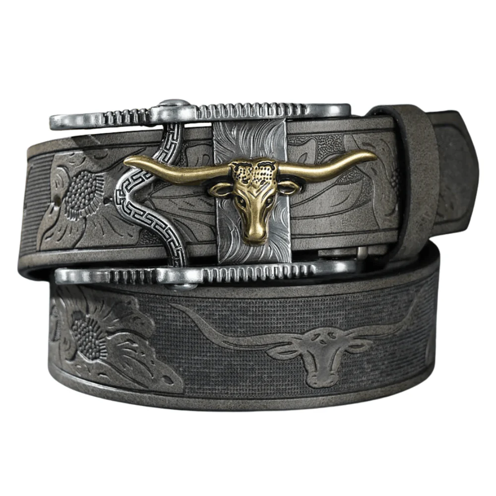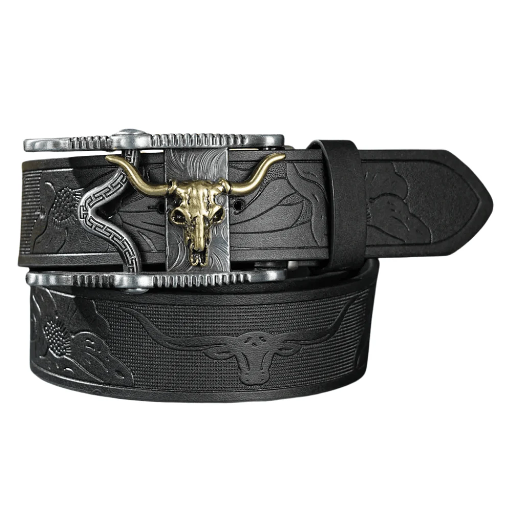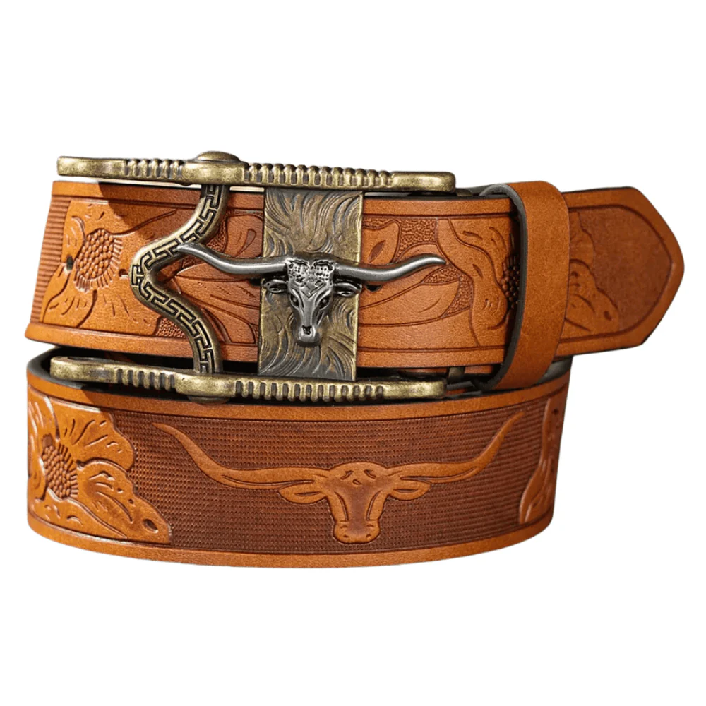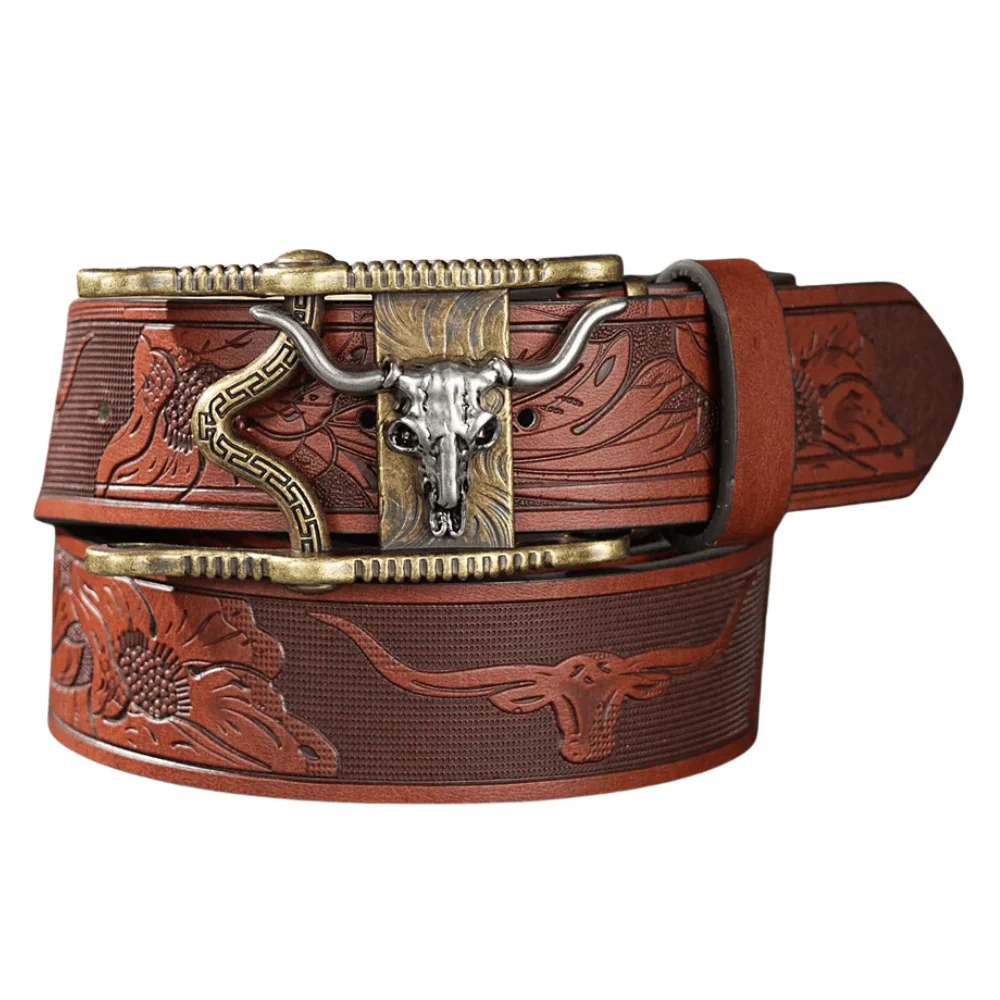Upptäck känslan av ett cowboybälte med longhorn vintagespänne som lyfter din stil