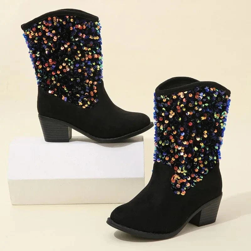 Cowboyboots barn med glittrande paljettdekor : små steg med stor stil