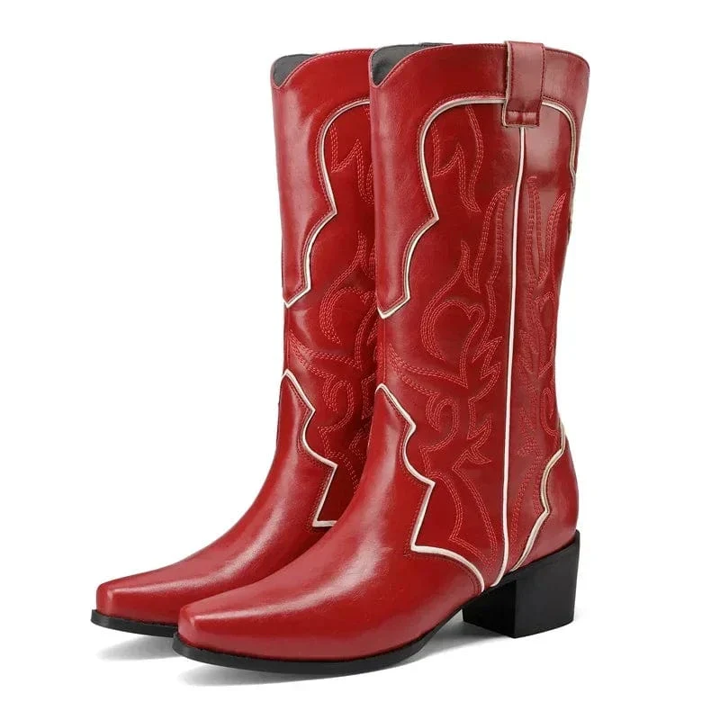 Cowboyboots med broderad westernstil i lyxigt läderlook: ge din look ren cowgirl-attityd