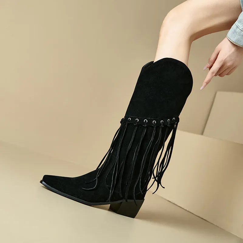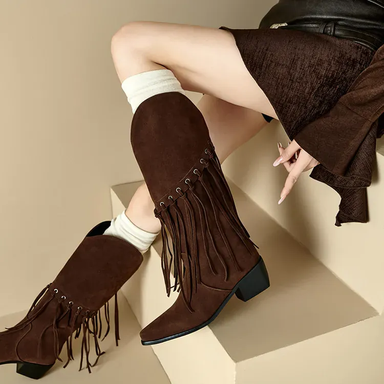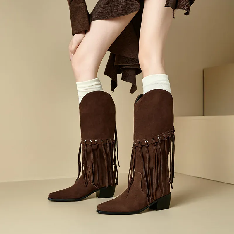 Cowboyboots med fransar i mjuk mockalook: känn friheten i varje steg