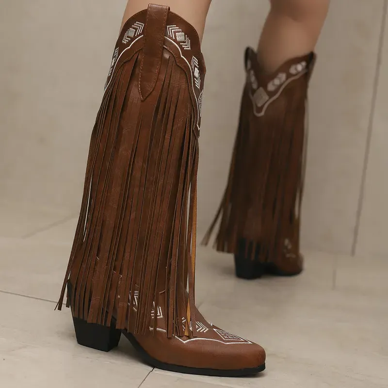 Cowboyboots med tofsar i mjukt läder och broderade detaljer: westernstil med själ och elegans