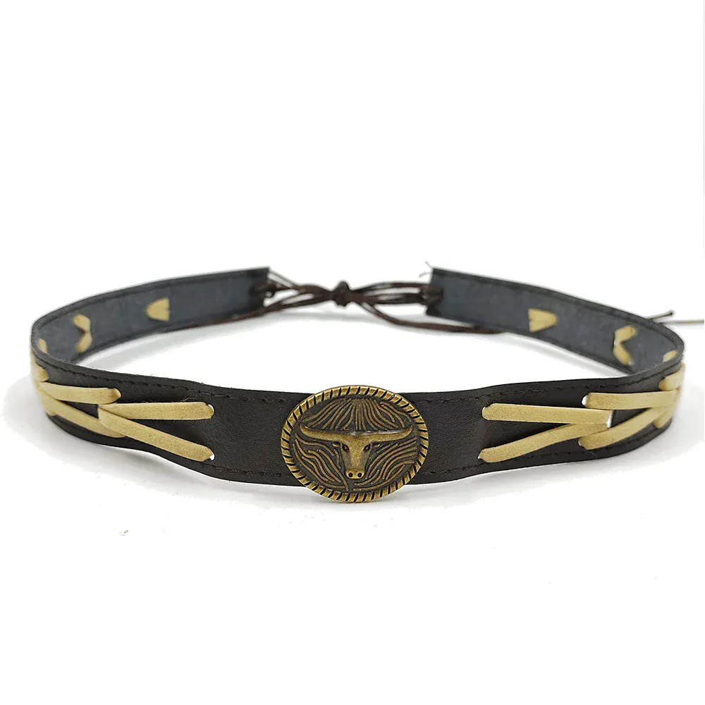 Låt din hatt tala med detta unika hattband i mörkt läder med en antikguldfärgad tjursymbol – en detalj som för tankarna till vida prärievidder och cowboyns självsäkra attityd. Oavsett om du är på rodeo, festival eller bara vill lyfta din vardagslook, ger det här bandet din stil en robust och självsäker känsla.