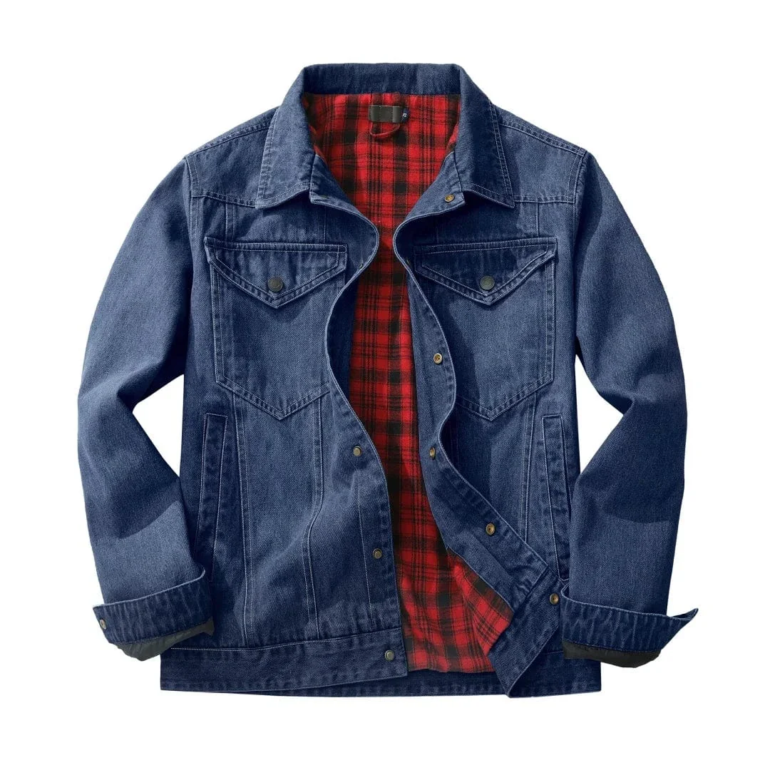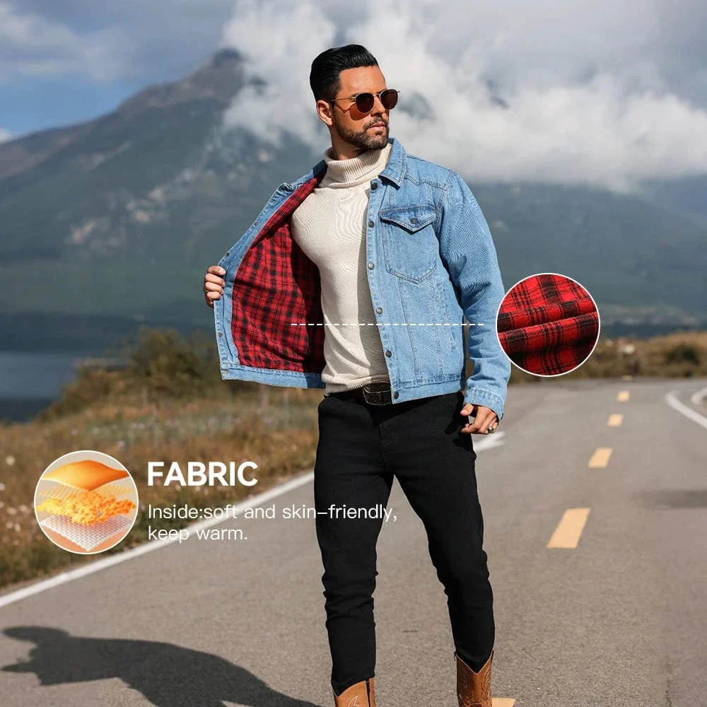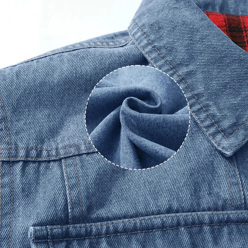Låt din stil ta plats på prärien med vår fodrade jeansskjorta i cowboy-stil för herr. Den kombinerar robust denim med mjuk, rutmönstrad bomullsfoder som håller dig bekväm under kyliga dagar. Perfekt för dig som vill ha både en slitstark vardagsjacka och en stilfull detalj med western-känsla.