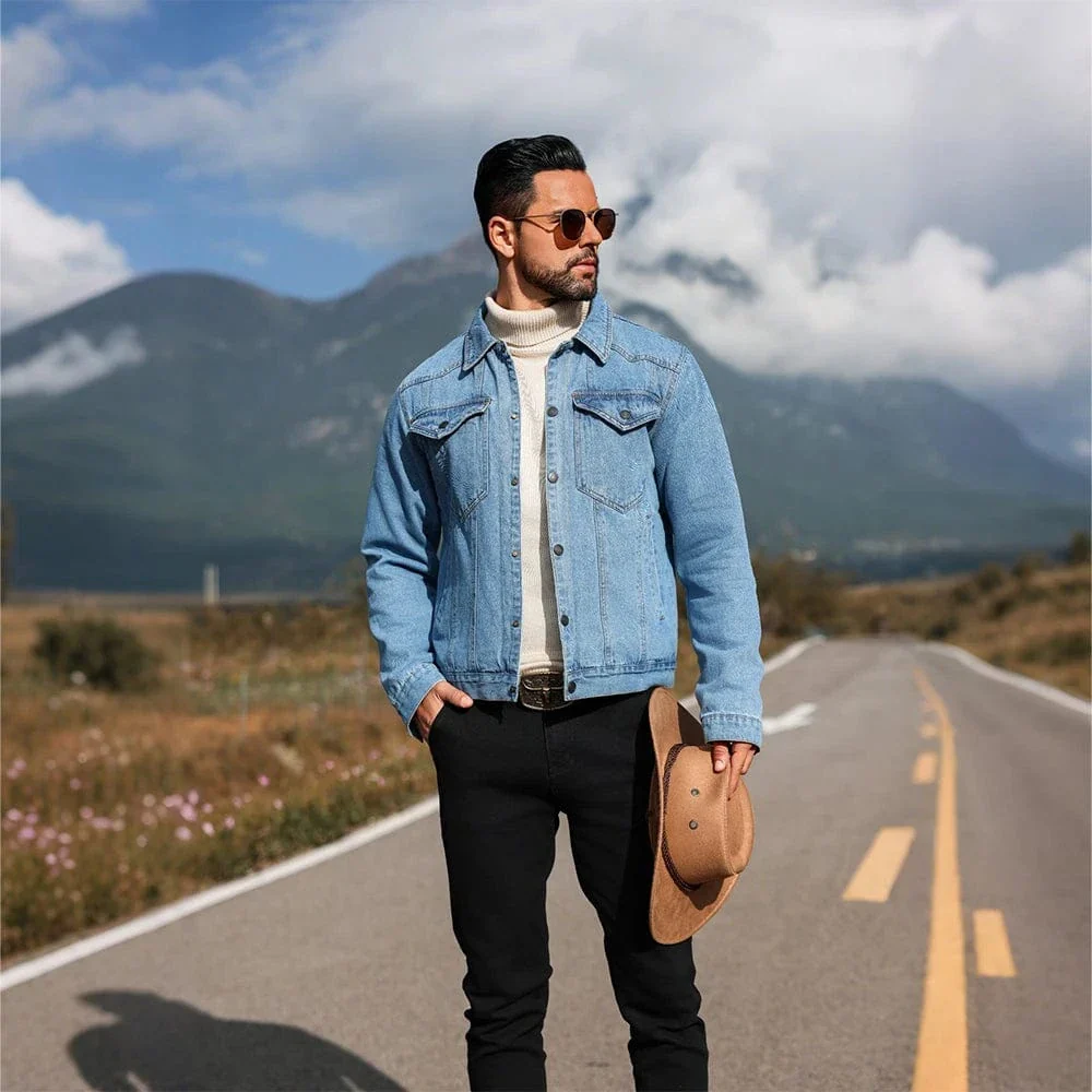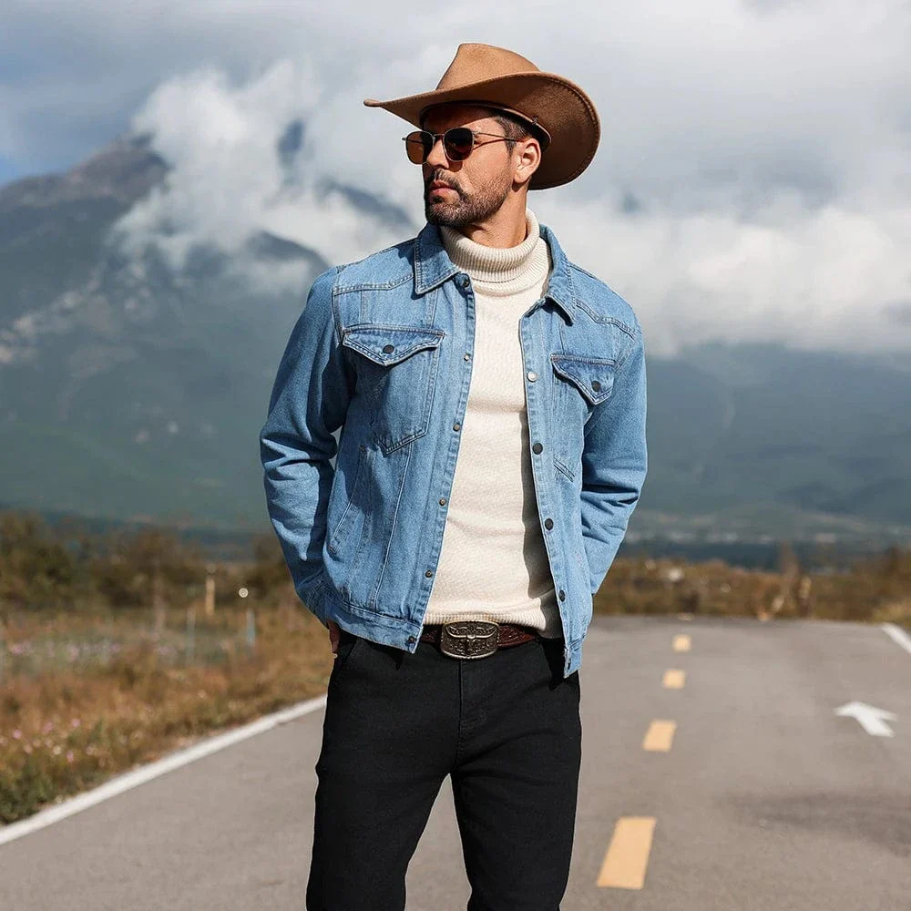 Fodrad jeansskjorta herr i cowboy-stil: tidlös denim möter vild västern