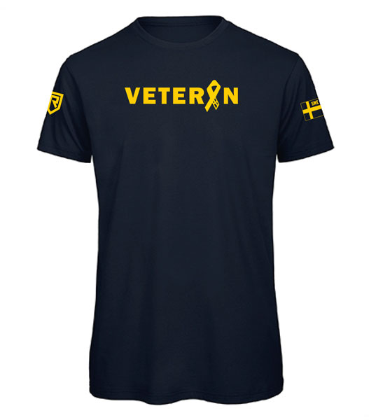 En del av överskottet från den här t-shirten går till Gula Bandets och Sveriges Veteranförbunds verksamhet med att stötta utlandsveteraner och anhöriga.