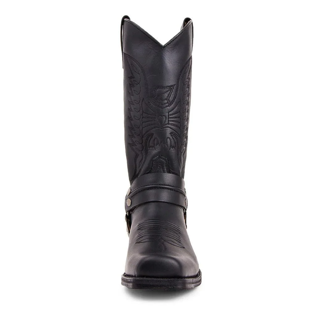 Kliv in i en värld av tidlös maskulinitet med våra höga cowboy biker boots för herr. De här stövlarna kombinerar vilda väst-vibbar med modern komfort – perfekta för dig som vill ha en stil som både sticker ut och känns självklar. Med sin robusta siluett, eleganta sömnadsdetaljer och klassiska slip-on-design är de lika snygga i sadeln som på stadens gator.
