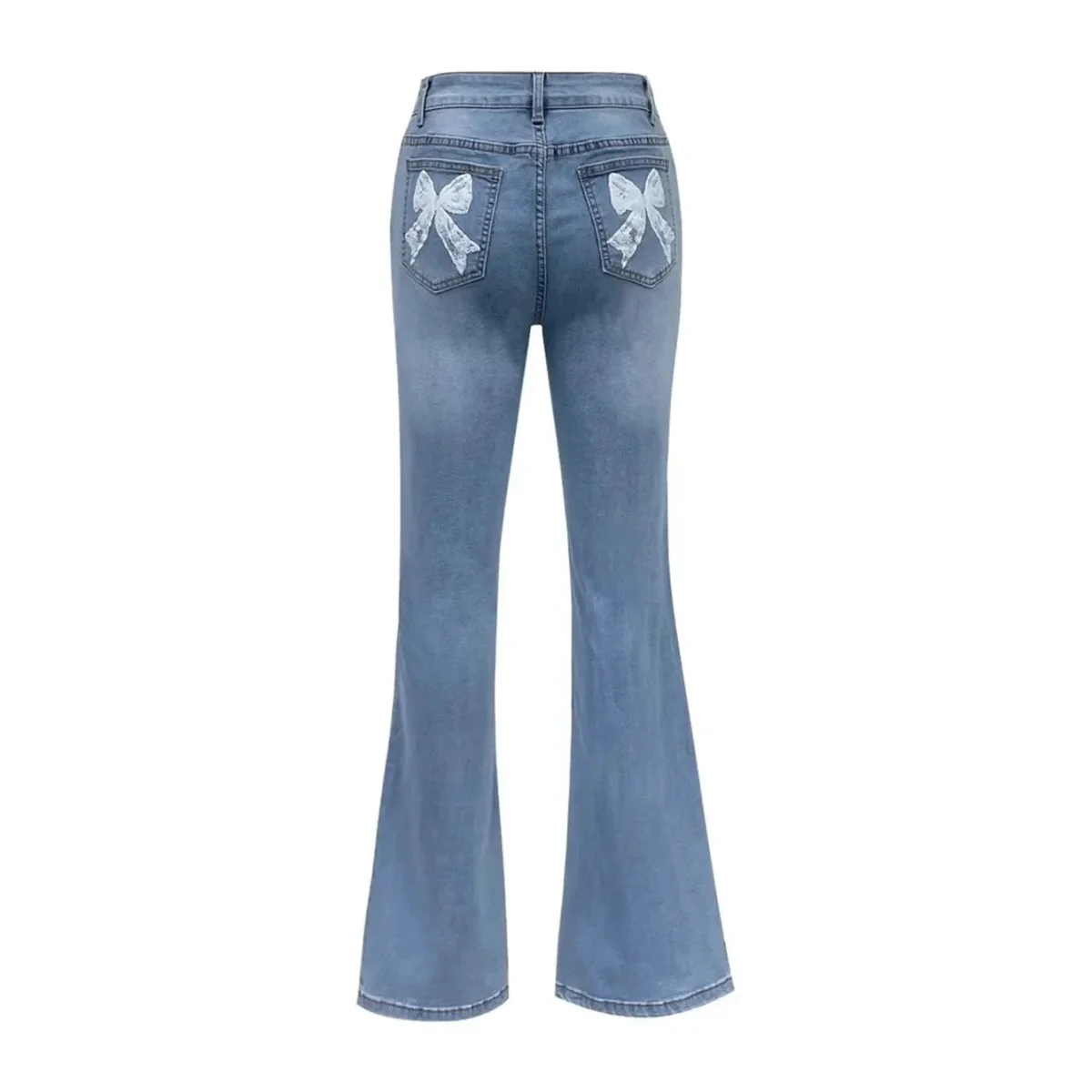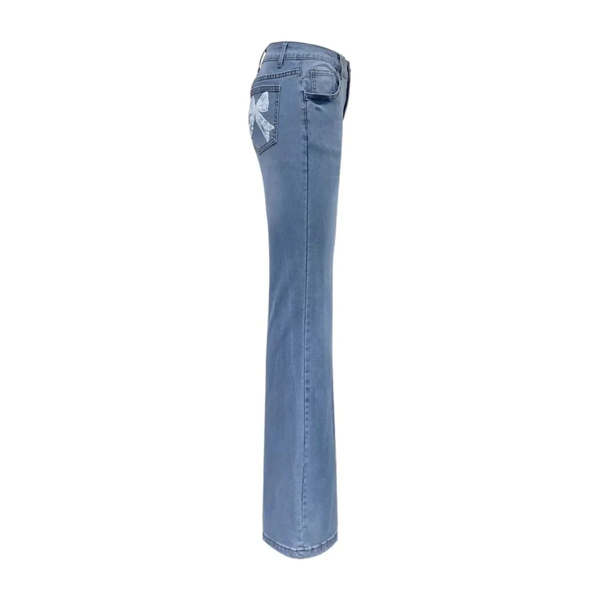 Bli först med att recensera ”Högmidjade blå flare jeans med rosett-broderi för dam”