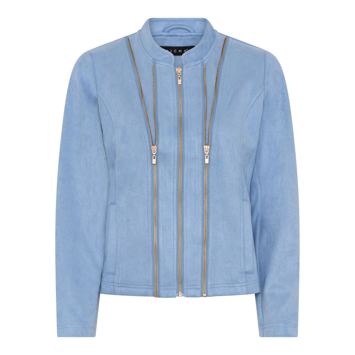 Urläcker jacka i fuskmocka från Micha. Dragkedja i guldfärg och två fickor fram. Två dekorativa dragkedjor i guldfärg. Perfekt för både inomhus och utomhus bruk.