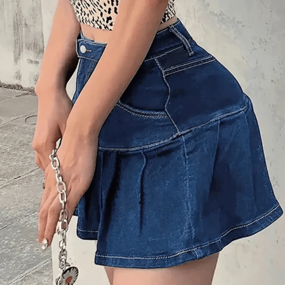 Därför älskar våra kunder denna korta plisserade jeanskjol