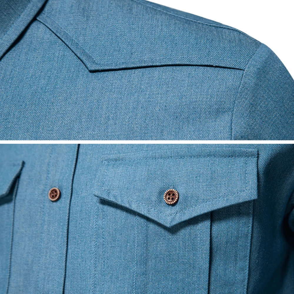 - Autentisk western-känsla – klassiska bröstfickor och kontrastsömmar ger en äkta cowboy-look.