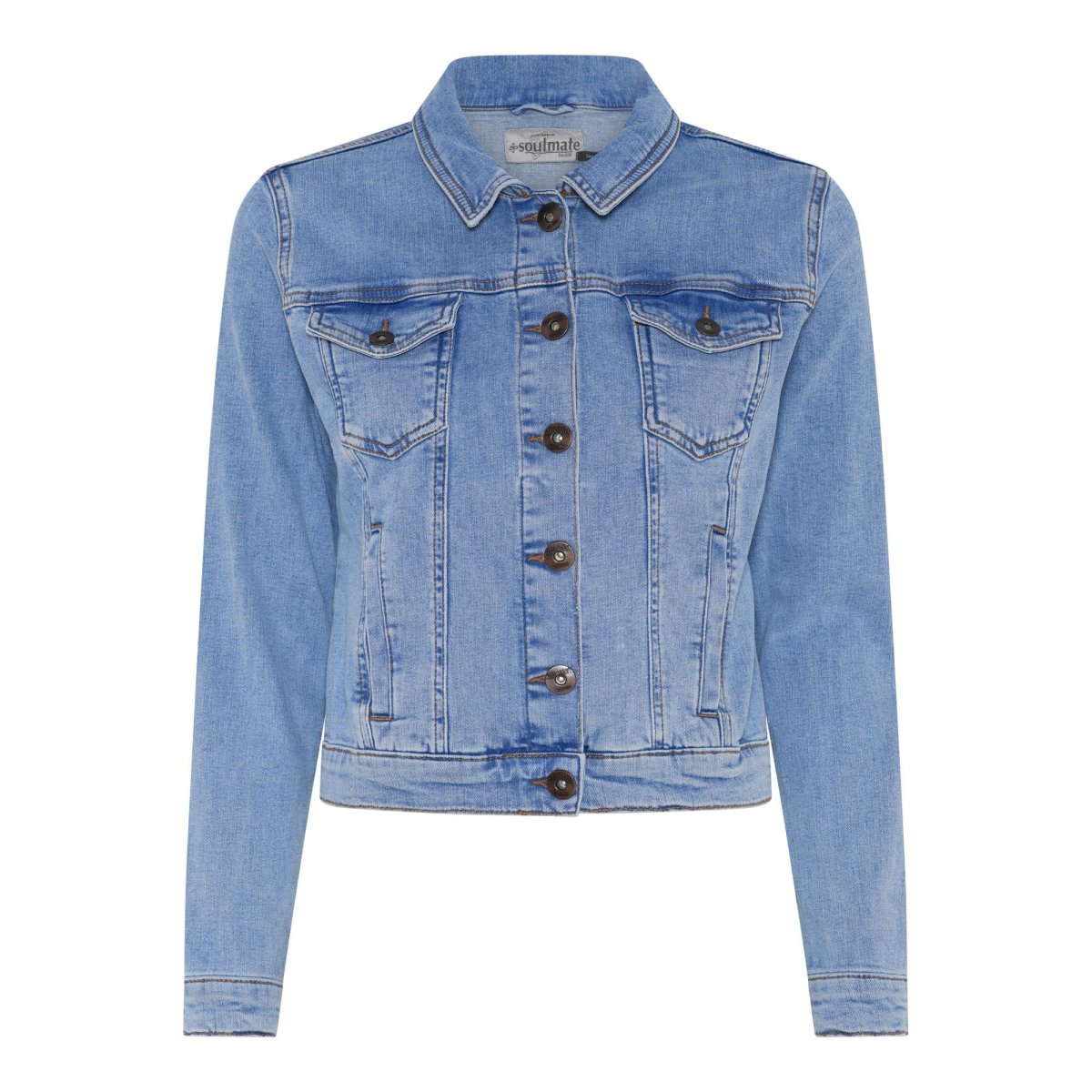 Snygg jeansjacka Soulmate. Bröstfickor med lock och snedfickor.
