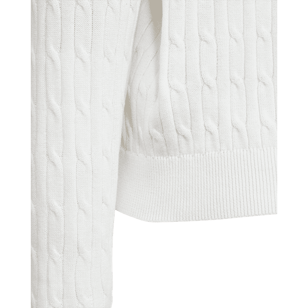 Denna fina stickade tröja i vintervitt kommer från FREE/QUENT. Tröjan har fint kabelstickat mönster och en rund ribbad halsringning samt lång ärm.