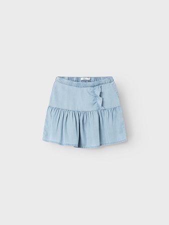Mjuk kjol med volangdetalj från Name It. Kjolen har resårkant bak i midjan och justerbara band inuti för perfekt passform. Kjolen har en större volangkant och en liten volangdetalj på sidan. Super söt kjol att styla tillsammans med matchande topp art.nr: 312255.