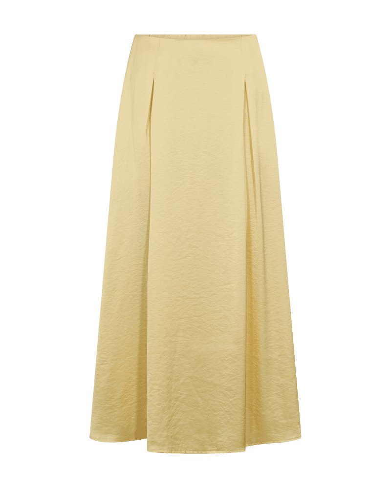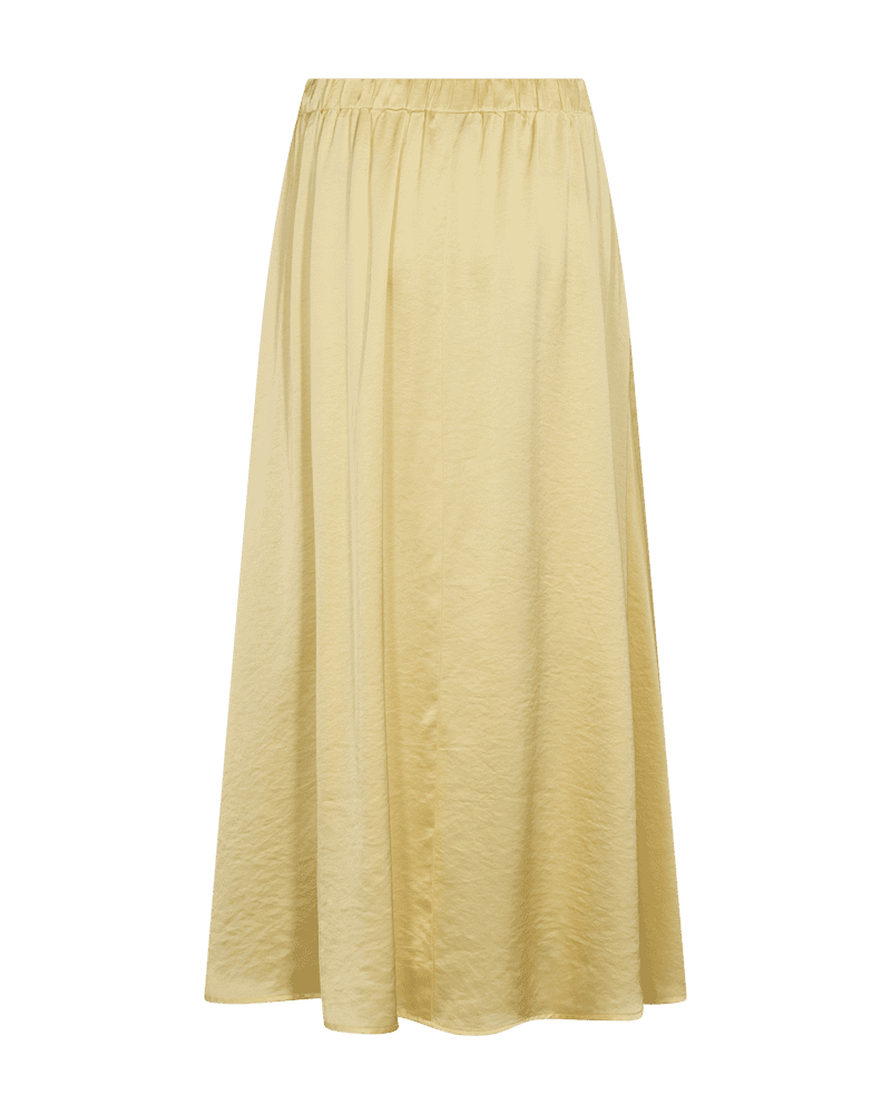 Härlig kjol i midilängd. Fast tyg framtill och resår baktill i midjan för bästa passform och komfort. Matchas fint med top i samma serie från Freeqent eller varför inte med en stickad jumper i vårens bruna nyanser. – supersnyggt!