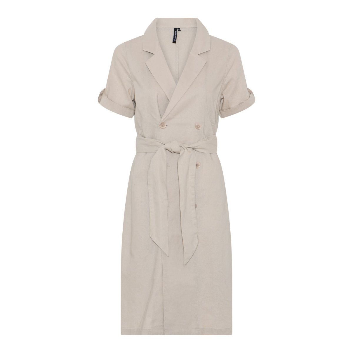 Jättefin midiklänning i viskos/bomullsblandning från Soulmate. Klänningen har krage, kort ärm och knäppning fram samt sidofickor.
