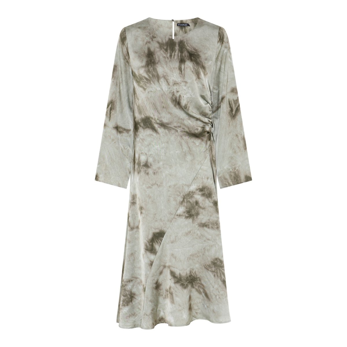 Härlig midiklänning i olika toner av grönt från Soulmate. Rund hals med knapp bak. 3/4 långärm.