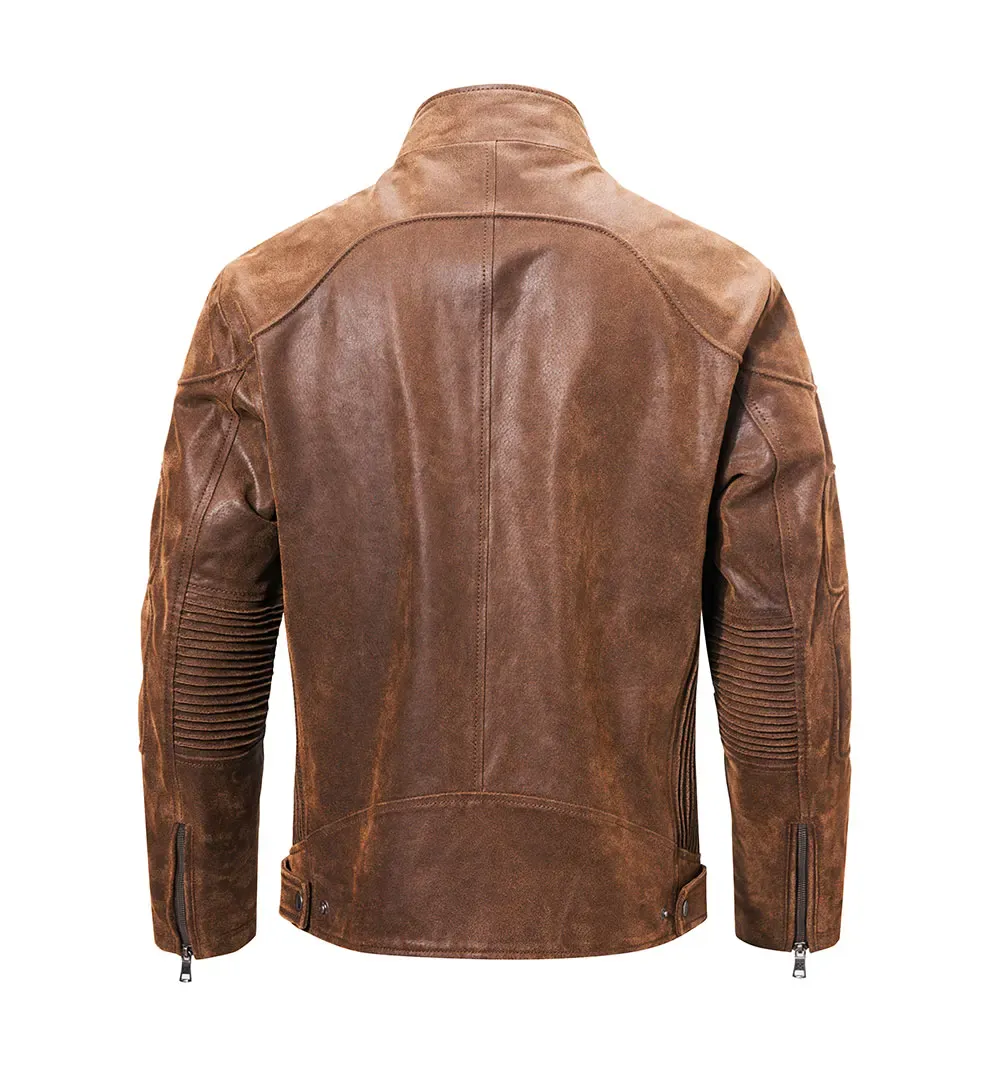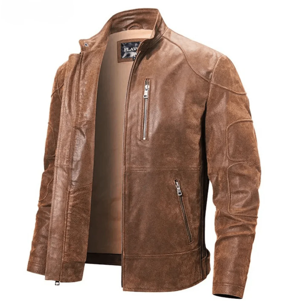 • Autentisk karaktär och patina: Tillverkad av äkta läder med en distinkt textur som åldras med värdighet. Jackan utvecklar en unik patina som berättar historien om dina äventyr, vilket ger den en personlig och exklusiv prägel.