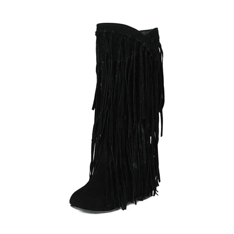 Ge stilen extra sting med våra knee-high cowboyboots med långa mockafransa
