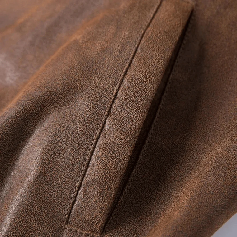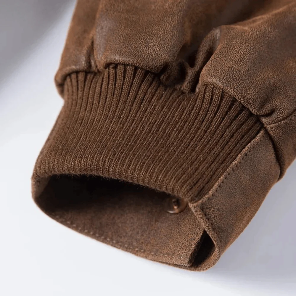 Läder bomberjacka som ger dig tidlös western-attityd och oväntad komfort