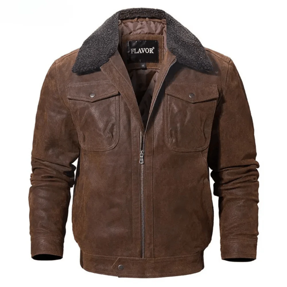 Stig in i en värld av tidlös stil med vår bruntonade läderjacka i äkta skinn. Den är skapad för dig som vill bära något robust, varmt och samtidigt elegant — en jacka som känns lika självklar på en roadtrip som i vardagen. Den mjuka shearling-inspirerade kragen ger en distinkt cowboykänsla, medan den kraftiga dragkedjan och de praktiska fickorna skapar en funktionell helhet du kommer att älska.