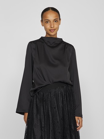 Långärmad blus från Vila, med hög hals och knapp-nyckelhålsstängning ett elegant och stilrent val för varje tillfälle. Tillverkad i ett glänsande tyg som ger en lyxig känsla, erbjuder denna blus en klassisk design med regular fit för optimal komfort och passform. Perfekt att styla både till vardag och fest för en sofistikerad och modern look!