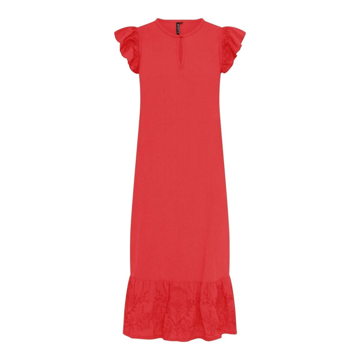 Härlig långklänning med volang från Soulmate. Rund hals med stängning av knapp. Dekorerad med fina sömnader nedtill.