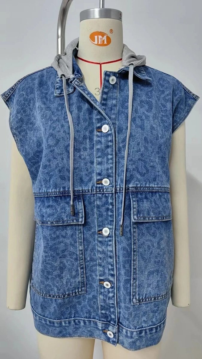 Upptäck en väst som kombinerar den tidlösa känslan av denim med det djärva uttrycket av leopardmönster. Perfekt för dig som vill addera personlighet och en lekfull twist till vardagsstilen.