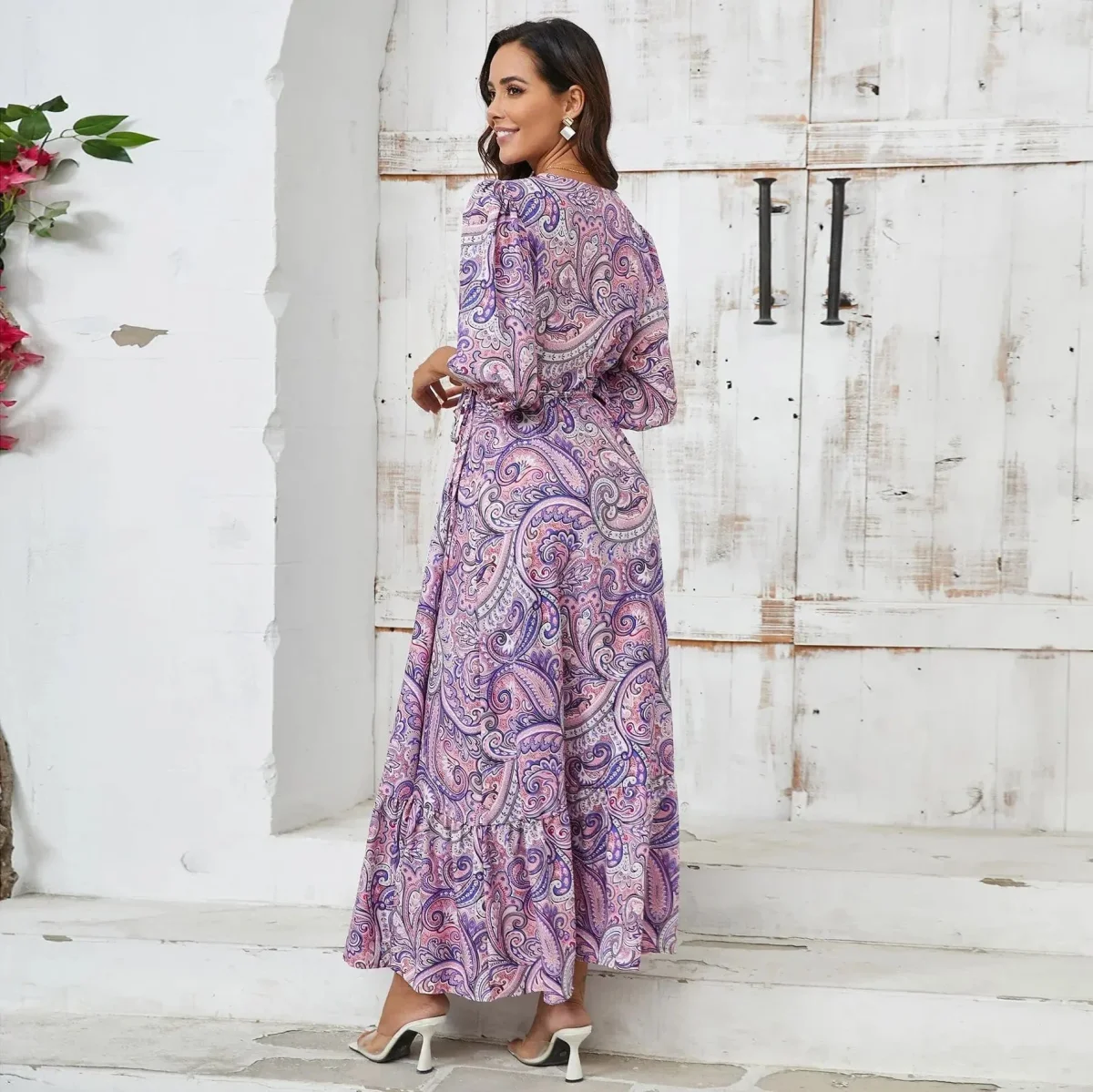 • Flödande design: Ankellång A-linjeform som skapar ett vackert och smickrande fall.