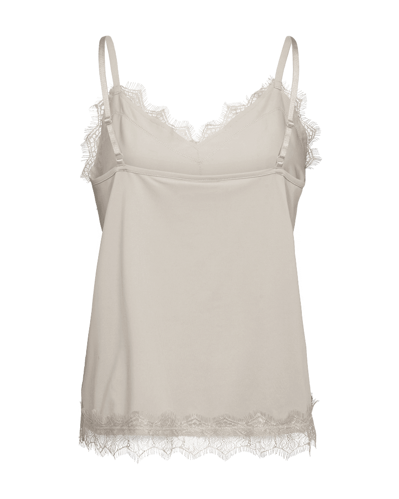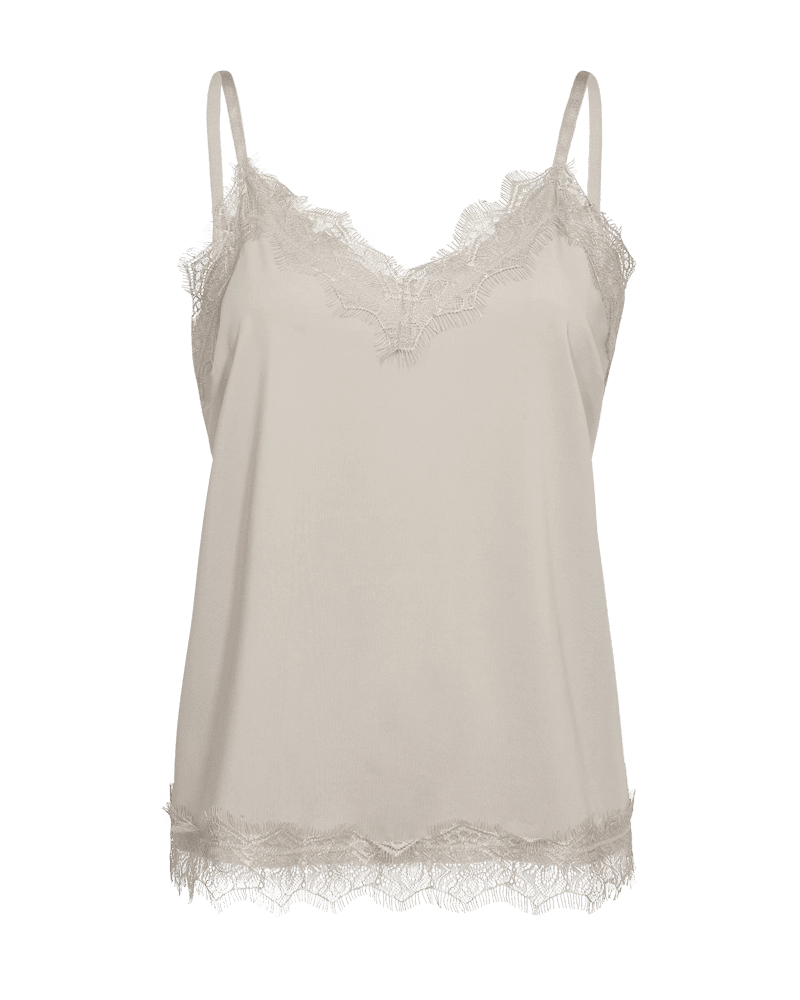 Detta snygga linne med spetskant kommer från FREE/QUENT. Linnet har en smickrande v-ringning, justerbara axelband och är avslappnad i passformen vilket gör den bekväm att bära som den är eller som lager på lager.